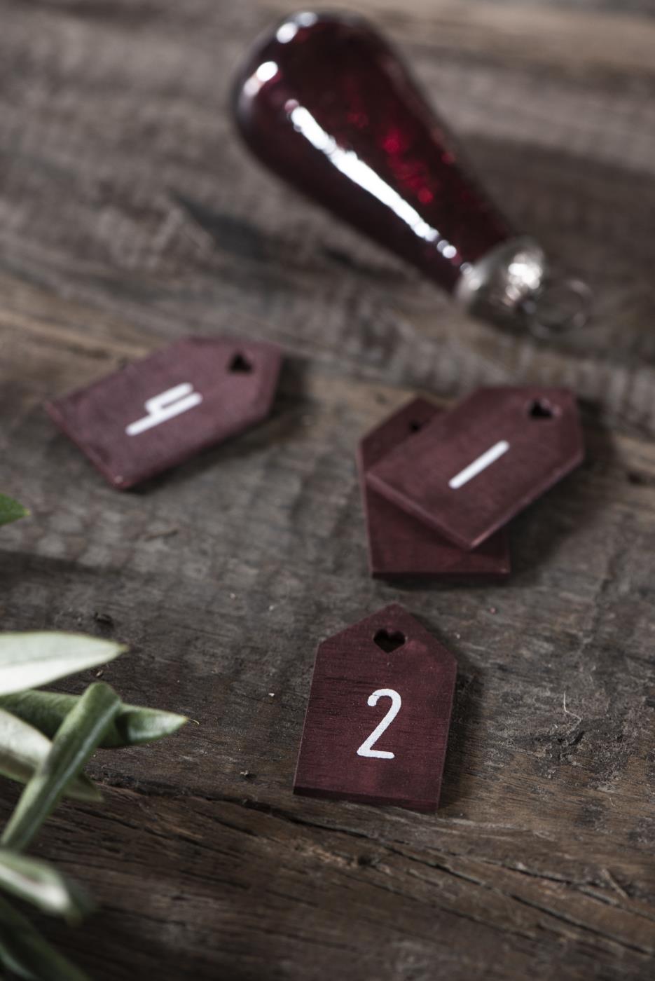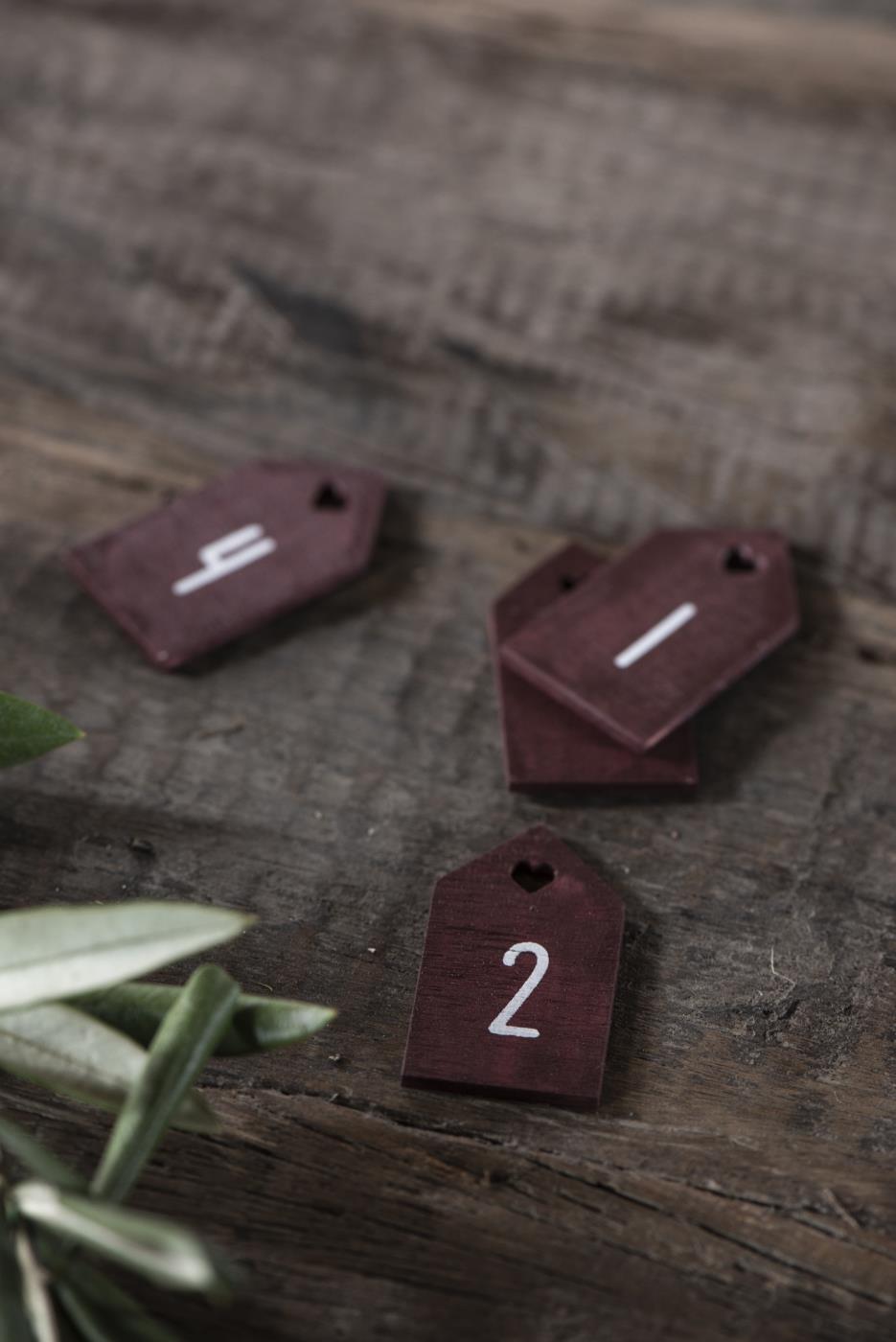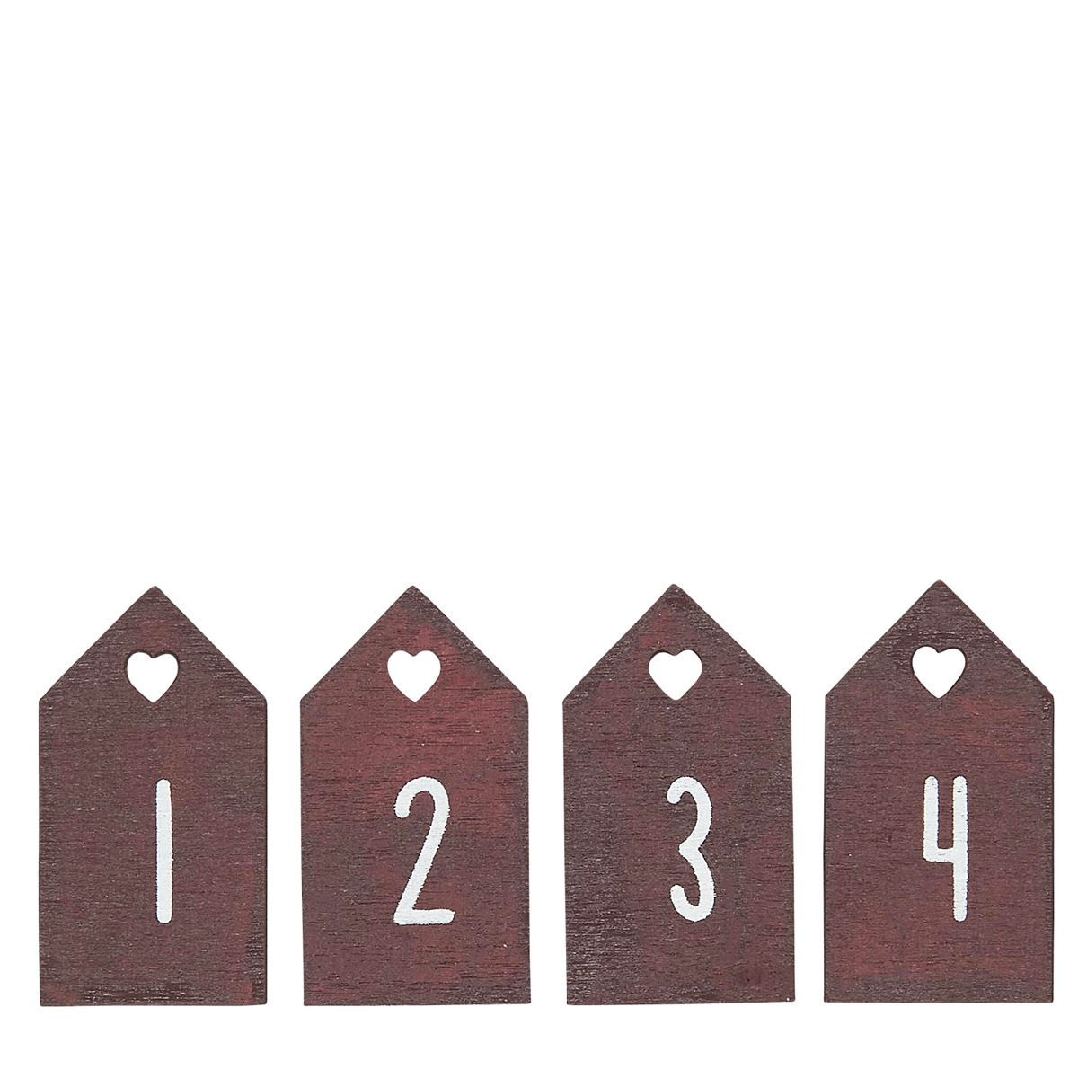Adventsanhänger Haus rot, Zahlenset 1bis 4, Geschenkanhänger, 4x2cm, Ib Laursen
