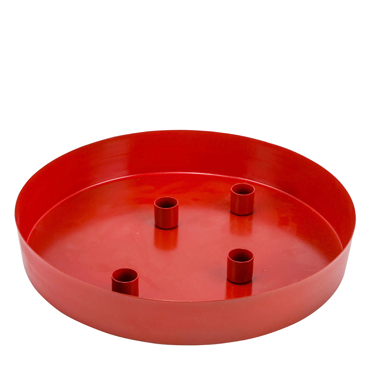 Adventschale mit 4 Stabkerzenhalter, Metallschale rot, Ø31cm