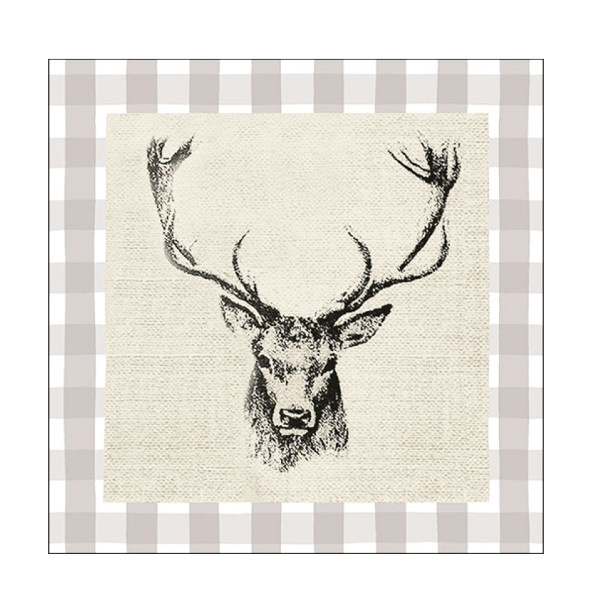 Herstellerinformationen zu "Ambiente Papierservietten Hirsch, Checked Stag Head Brown, Lunch, 33x33cm"