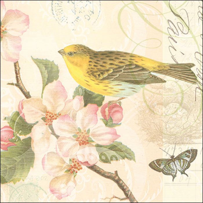 Ambiente Papierservietten Vogel, Schmetterling und Blumen Nostalgie, 33x33cm