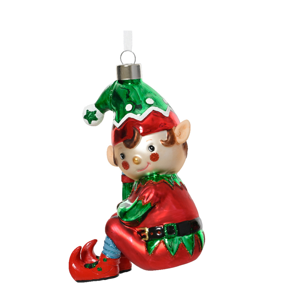 Baumschmuck Elfe, sitzende Weihnachtselfe mit grüner Mütze, 11cm, Kaemingk