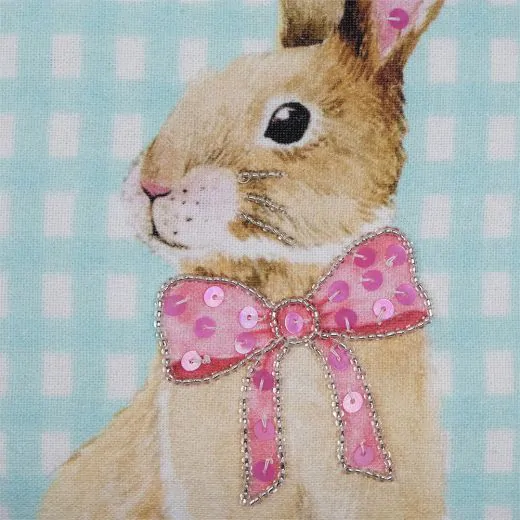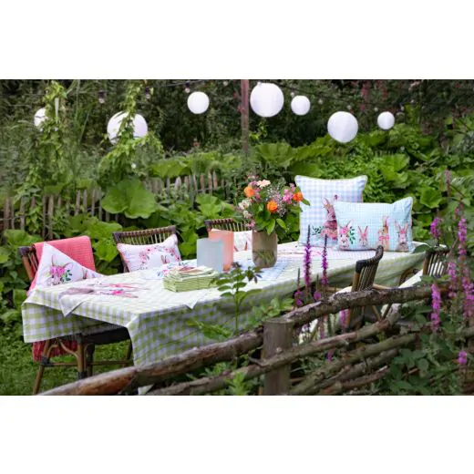 Herstellerinformationen zu "Baumwoll Kissen Hasen, 4 Kaninchen mit Blumen, hellblau-weiß kariert, 35x45cm, Mars & More"