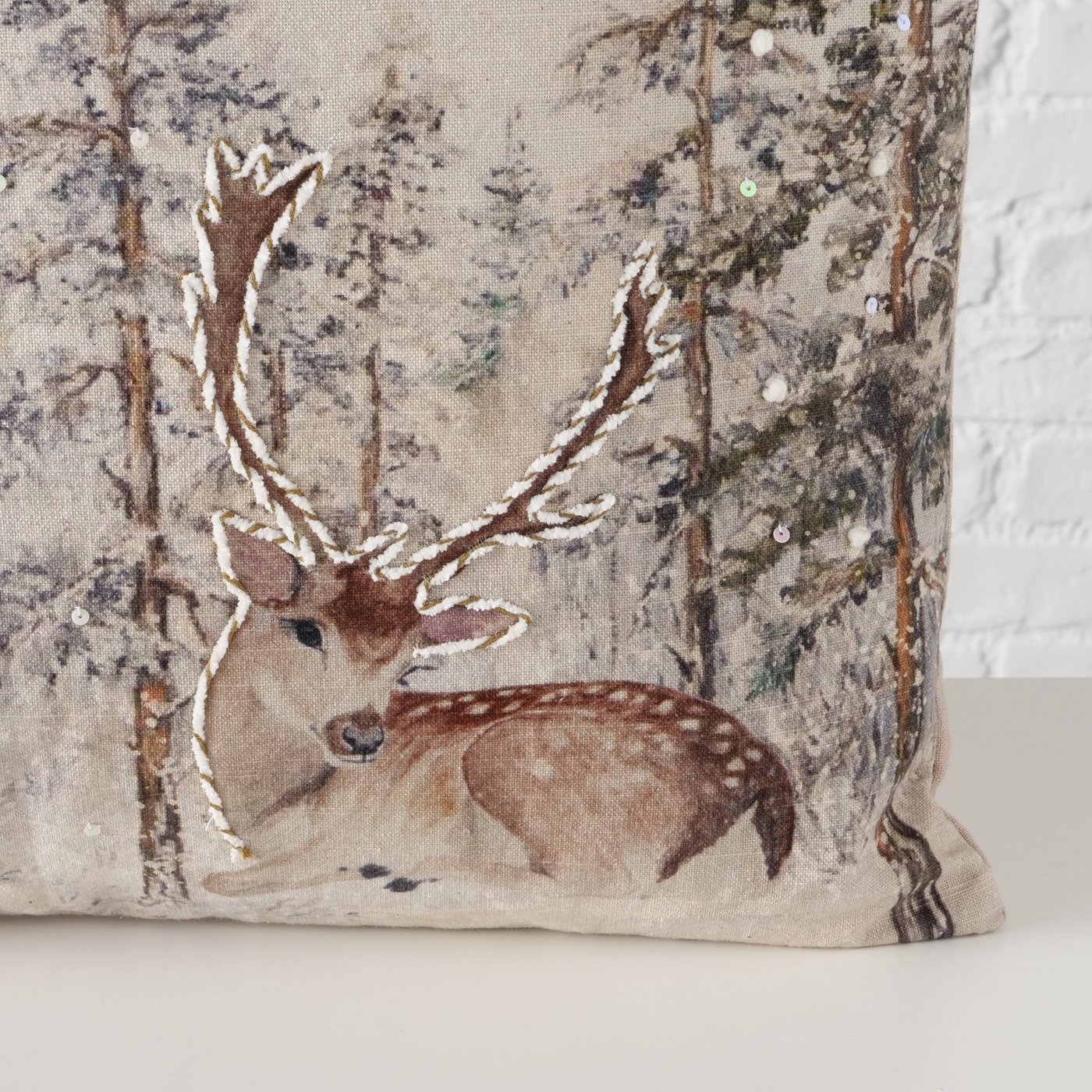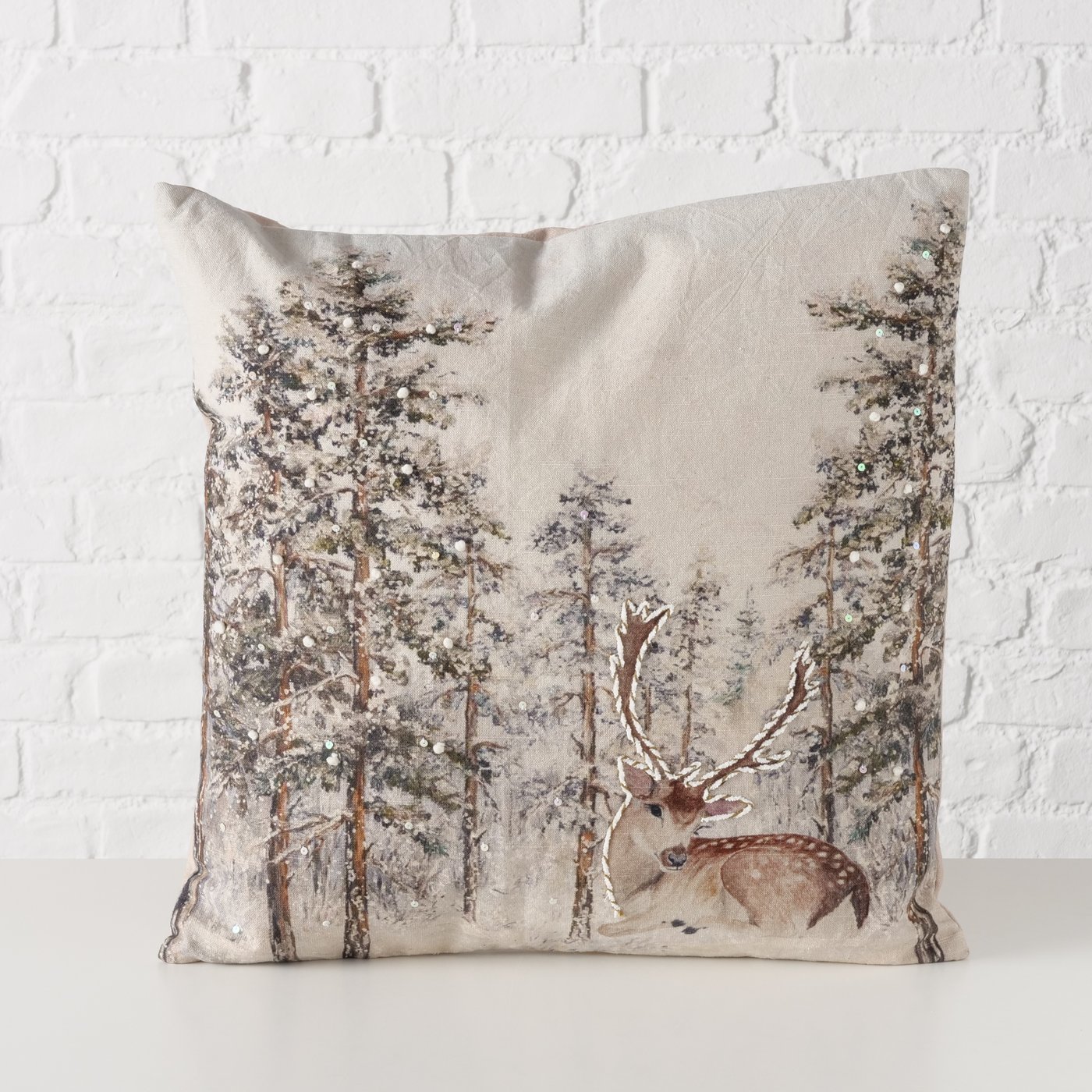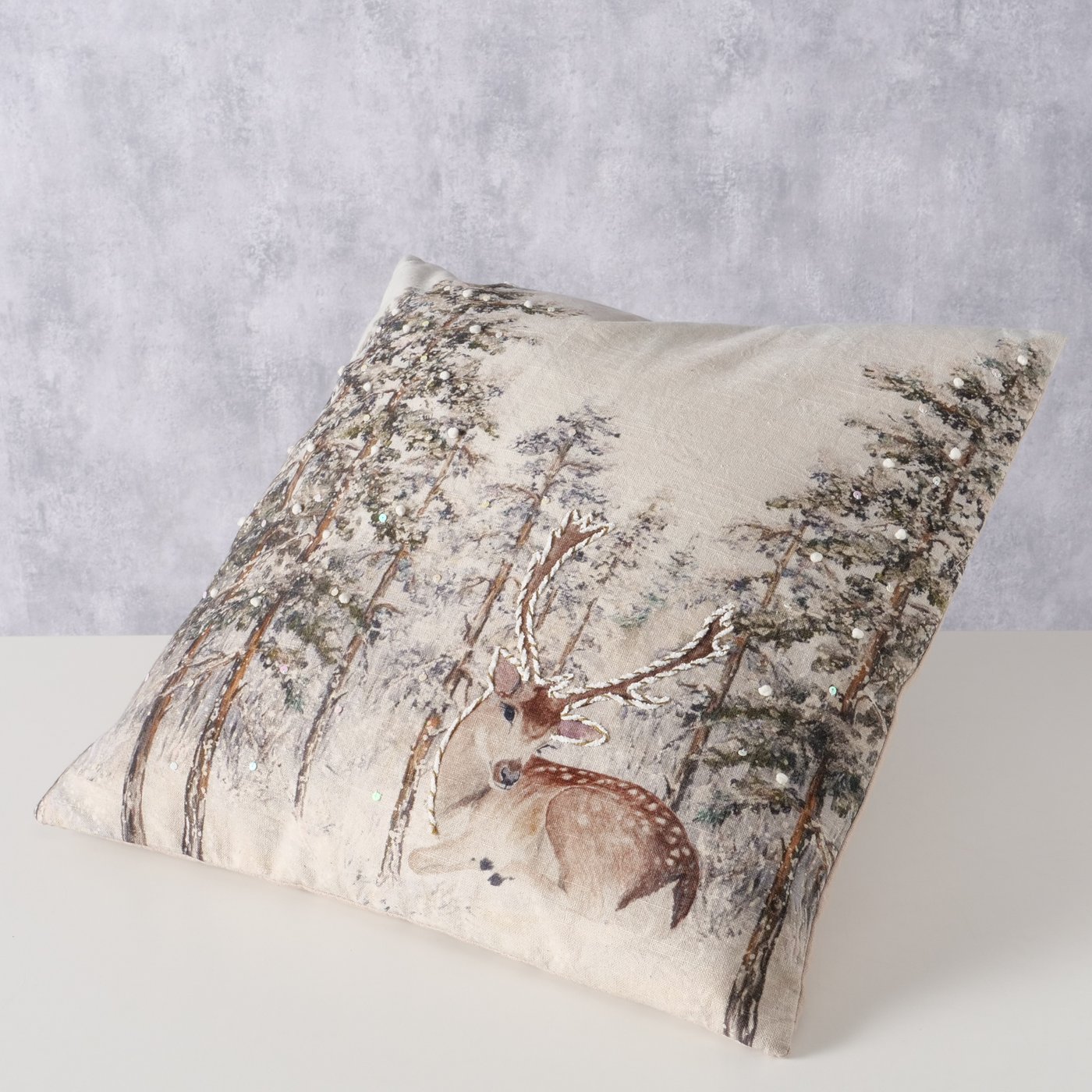 Baumwollkissen Hirsch Fria, Hirsch im Wald, 45x45cm, Boltze Home Collections