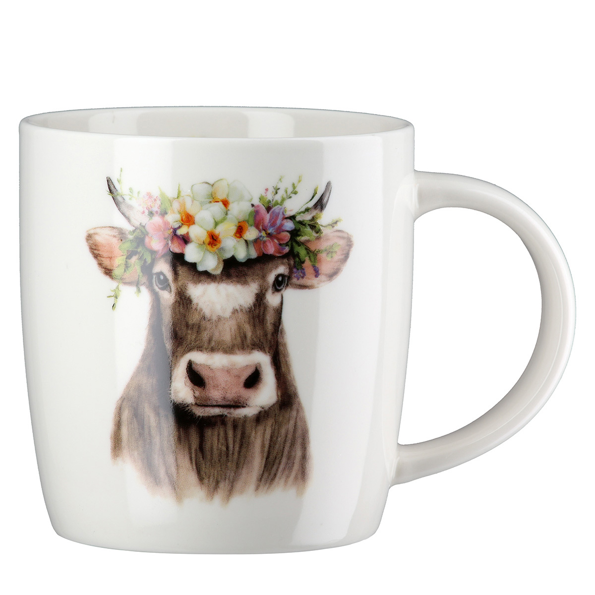 Becher Kuh Adelheid bringt mit ihrem liebevoll gemalten Blumenkranz sofort gute Laune auf den Tisch.
