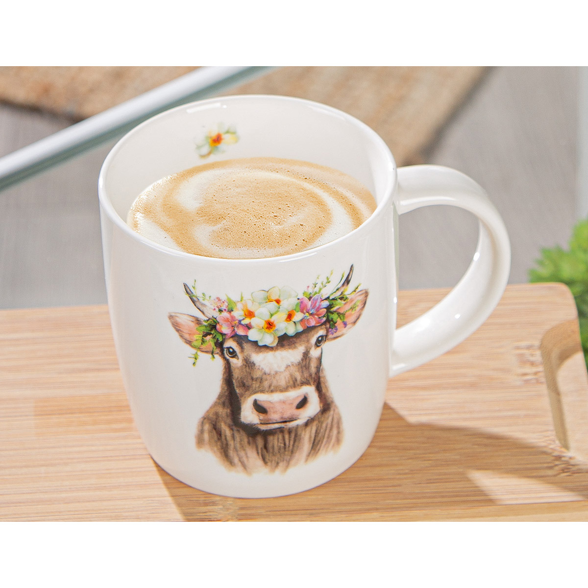 Produktinformationen "Becher Kuh Adelheid, Henkelbecher mit Kuhmotiv Blumenkranz, 380ml, Gilde "