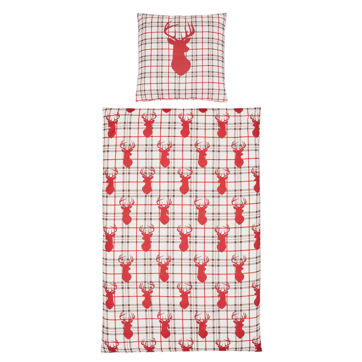 Diese karierte Bettwäsche mit rotem Hirschmotiv bringt gemütlichen Landhauscharme in dein Schlafzimmer.