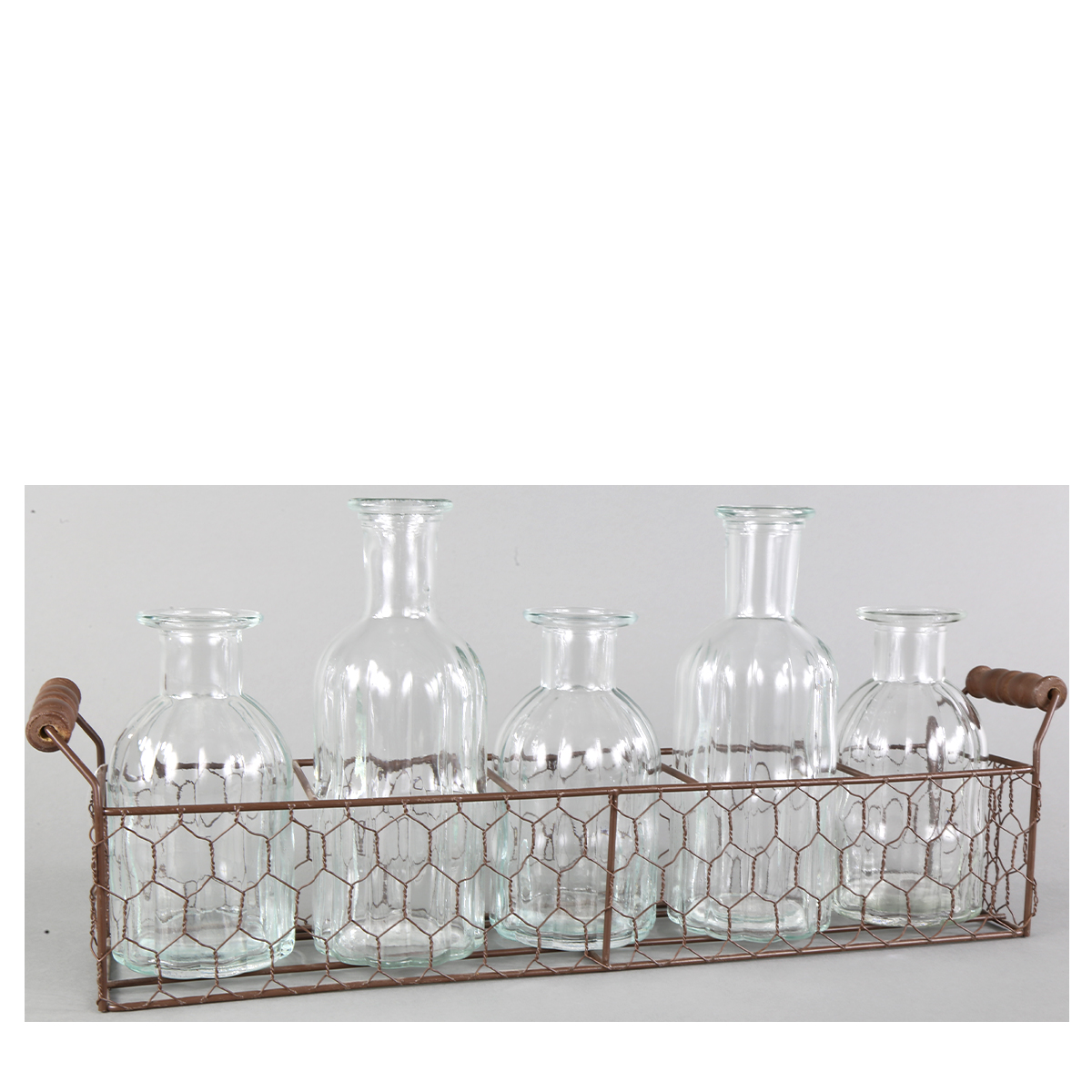 Produktinformationen "Blumenvasen im Drahtkorb, 5 Vasen im Henkelkorb, 46cm"