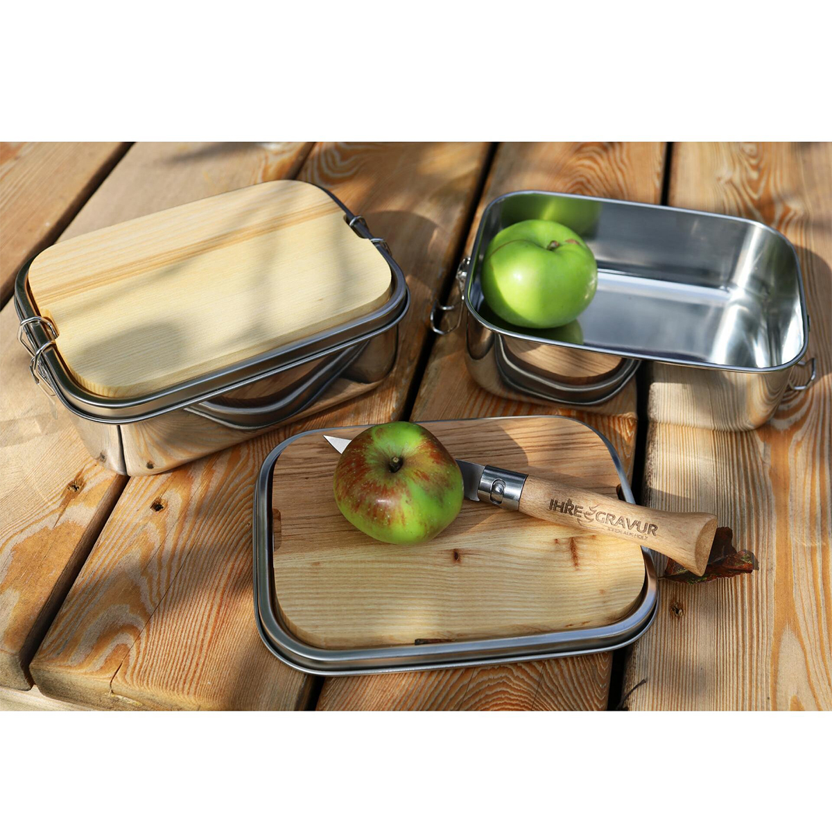 Brotzeitbox Edelstahl, Holzbrett Nußbaum, 1200ml