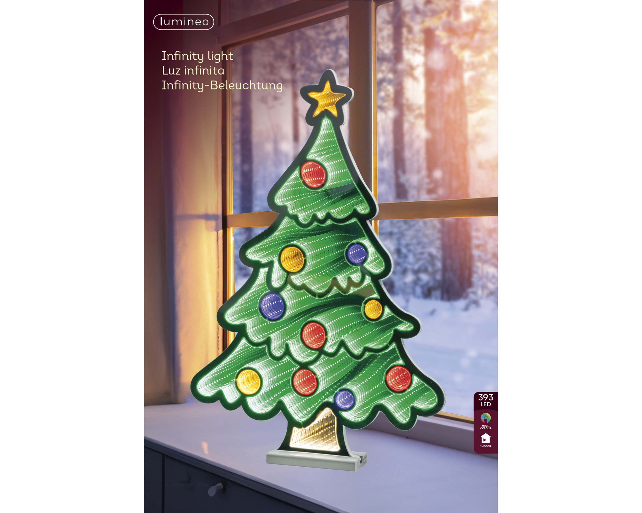 Durch die moderne Infinity Technik entsteht ein faszinierender Hologramm Effekt, der den Baum scheinbar unendlich tief erstrahlen lässt.