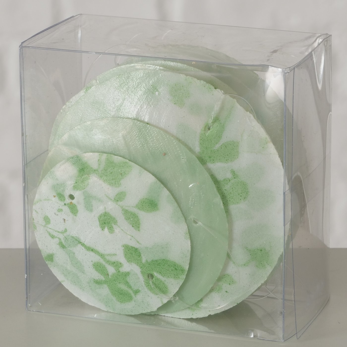 Diese filigrane Capiz Girlande bringt eine leichte, natürliche Frische in dein Zuhause und erinnert mit ihren zarten Grüntönen und floralen Mustern an blühende Wiesen und sanfte Frühlingstage. Die runden Elemente aus echter Capizmuschel schimmern je nach Lichteinfall leicht und verleihen der Dekoration eine besondere, lebendige Ausstrahlung.