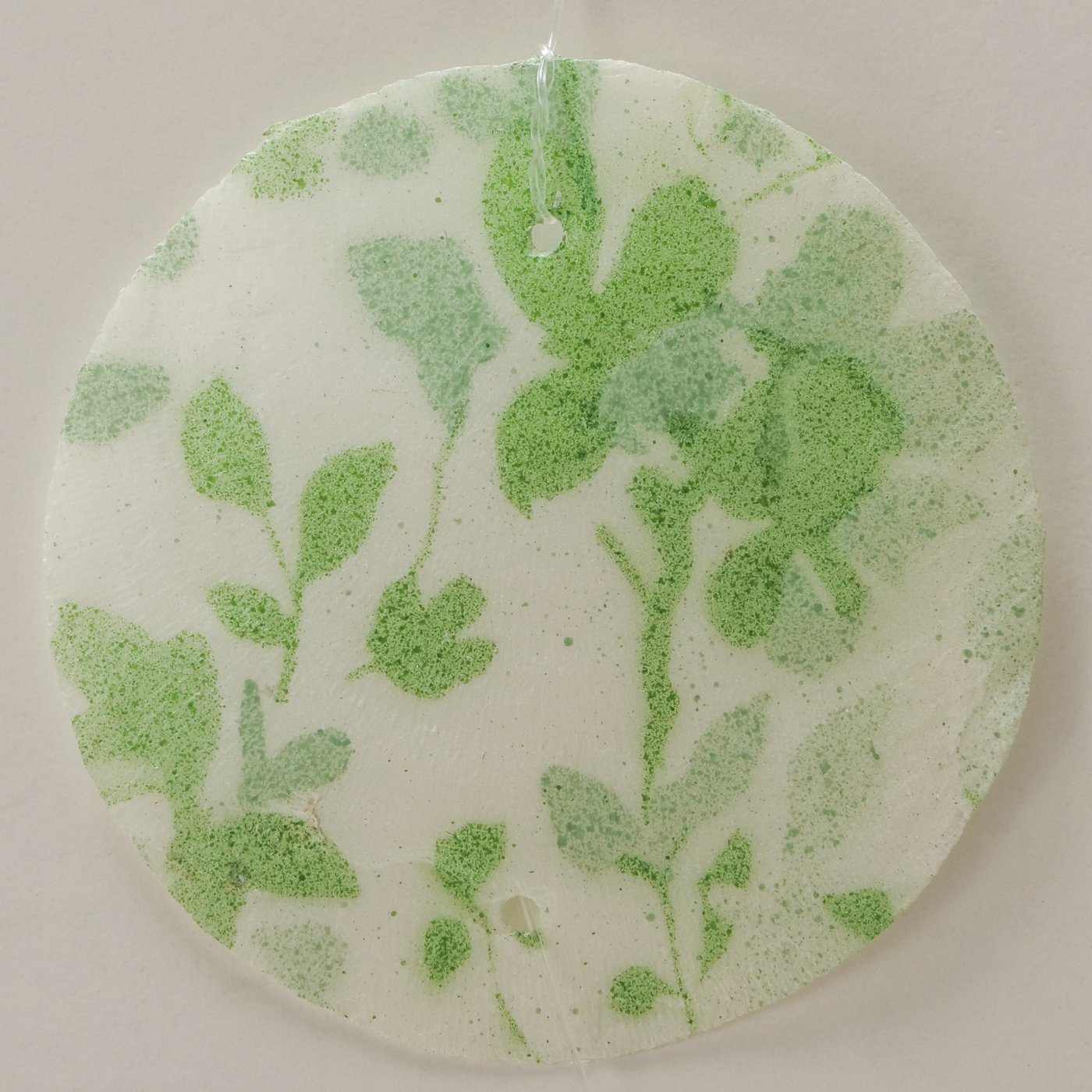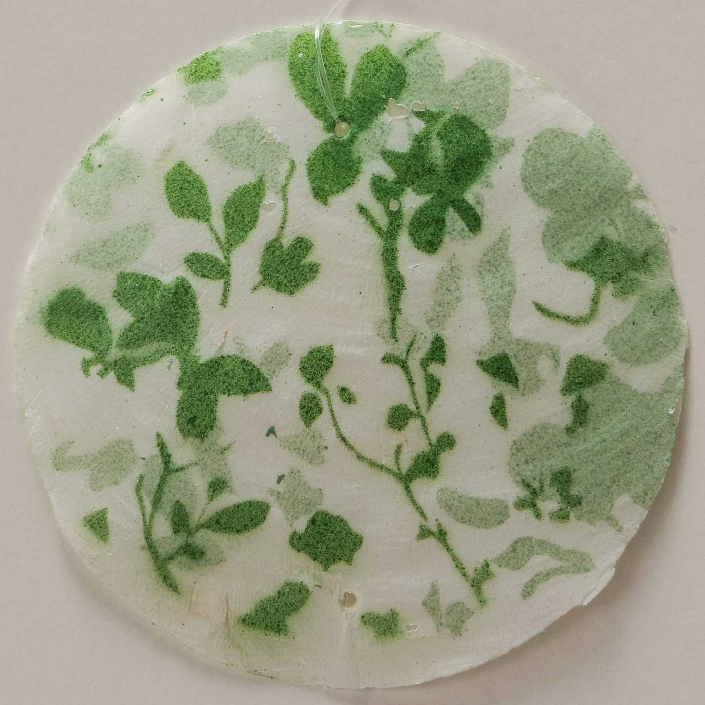 Jede einzelne Scheibe ist handgearbeitet und bemalt, wodurch die Girlande ihren individuellen Charakter erhält. Durch die feine Verbindung entsteht eine luftige, elegante Optik, die sich wunderbar an Fenstern, Wänden oder auch als dezente Raumdekoration einsetzen lässt.