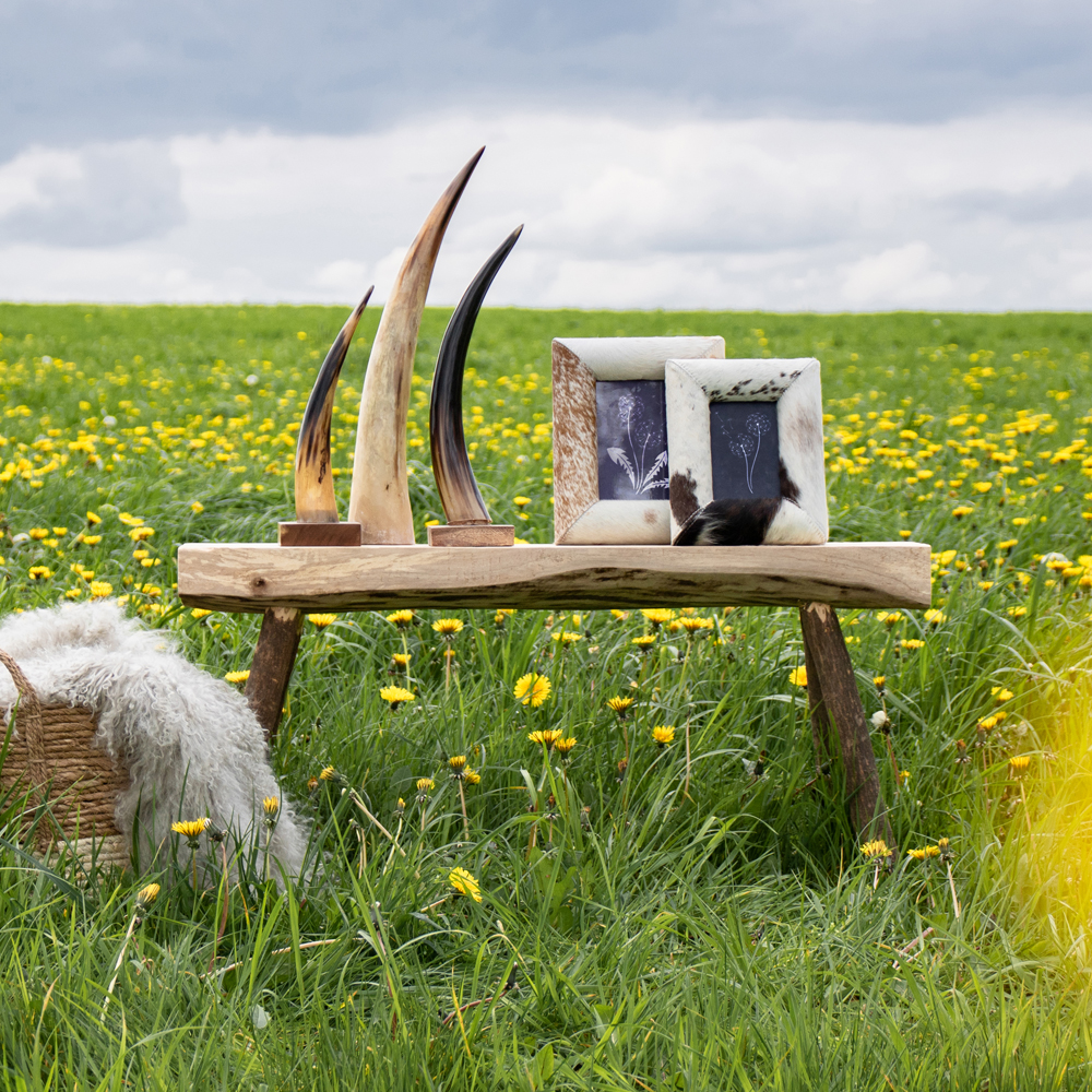 Diese rustikale Deko-Bank aus Naturholz bringt ursprüngliche Wärme und alpinen Charakter in dein Zuhause.