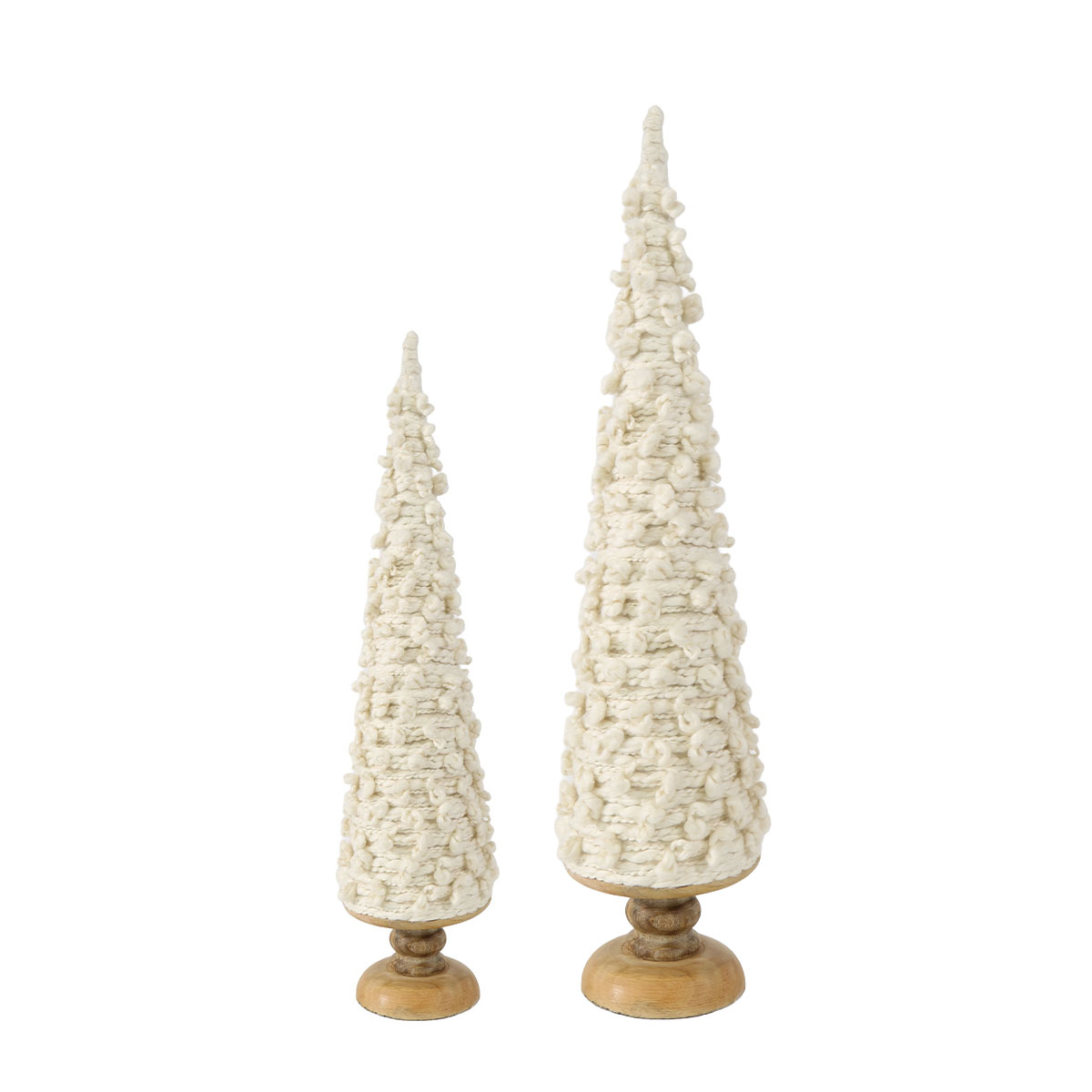 Ein schlanker, edler Deko Baum, der mit seiner noppigen Wollstruktur sofort eine warme, winterliche Stimmung verbreitet.