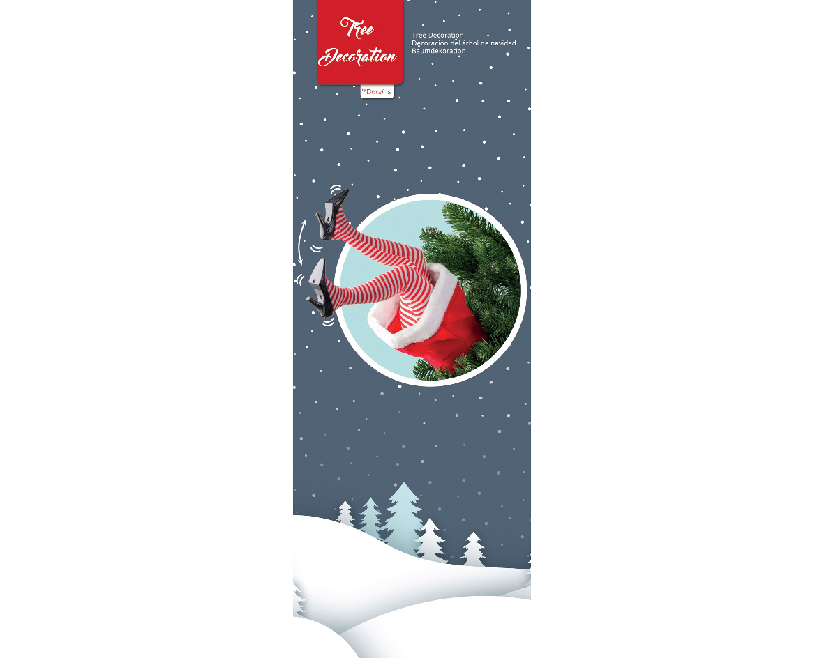 Die Elfen-Beine wirken, als wäre der kleine Weihnachtshelfer kopfüber im Baum verschwunden und verbreiten sofort gute Laune.
