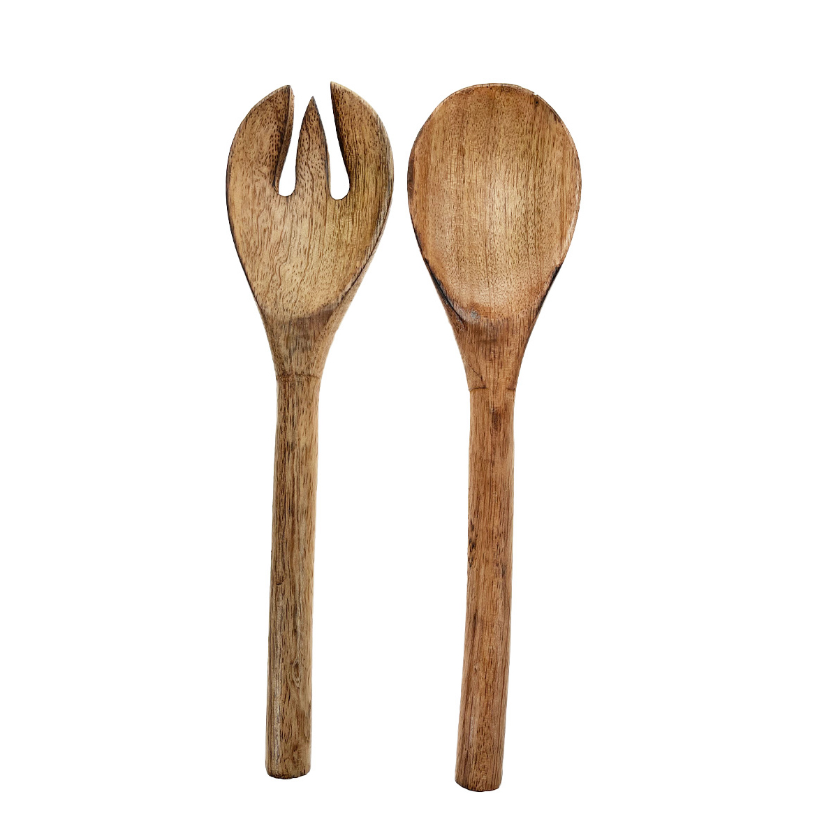 Deko Besteck Set, Holzbesteck Gabel und Löffel, Salatbesteck aus Mangoholz, 25cm