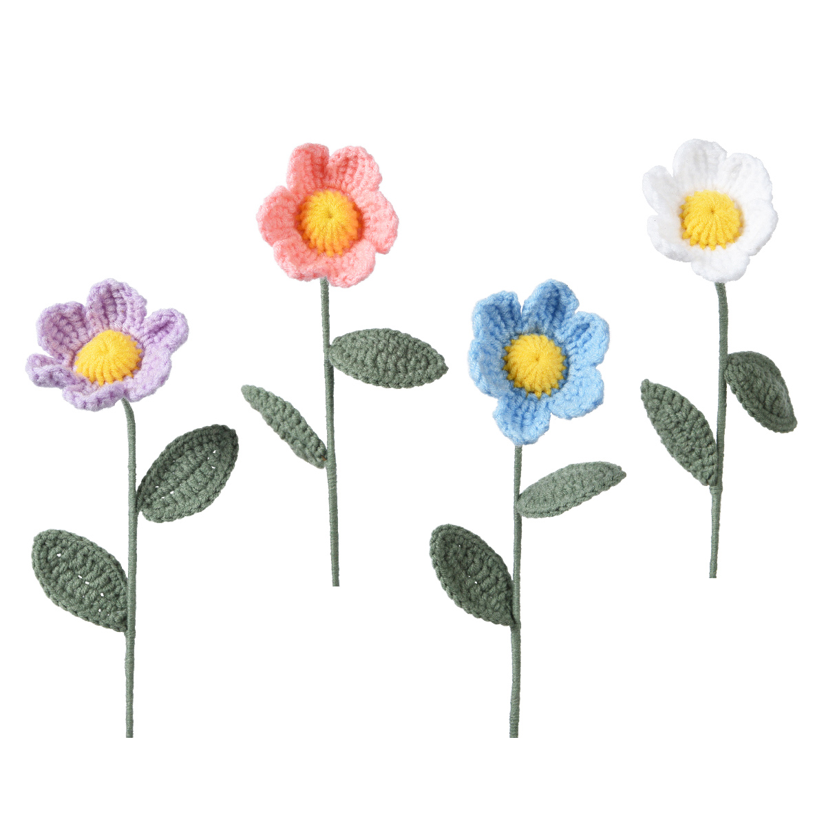 Deko Blume gehäckelt, Wollblume am Stil, lila-gelb, 30cm