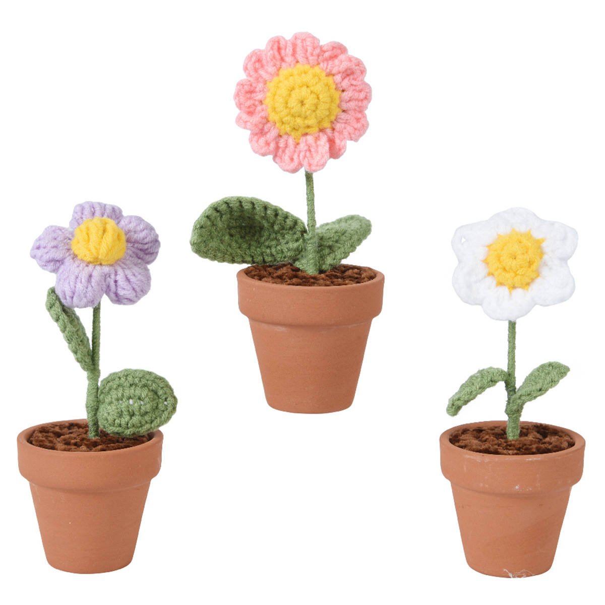 Herstellerinformationen zu "Deko Blume gehäckelt, Wollblume im Keramiktopf, lila-gelb, 14cm"