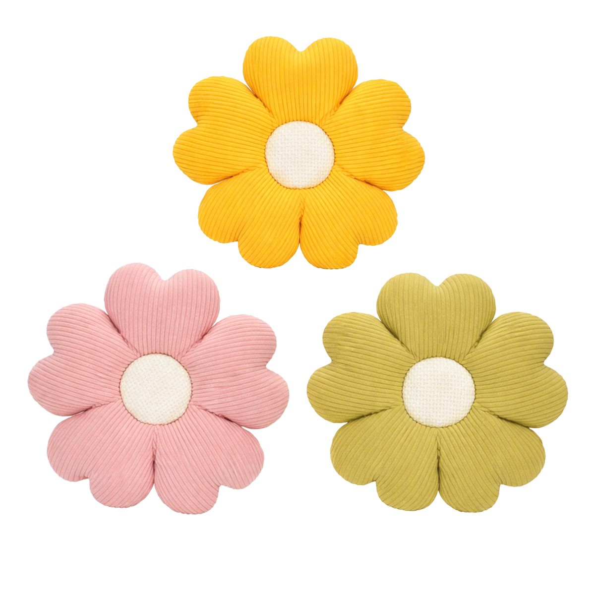 Die typische Cordstruktur macht das Kissen besonders gemütlich und verleiht der Blüte eine schöne, lebendige Oberfläche. Durch die runde Form wirkt es wie eine frisch aufgegangene Blume – nur ohne Gießkanne und garantiert ohne Welkegefahr.