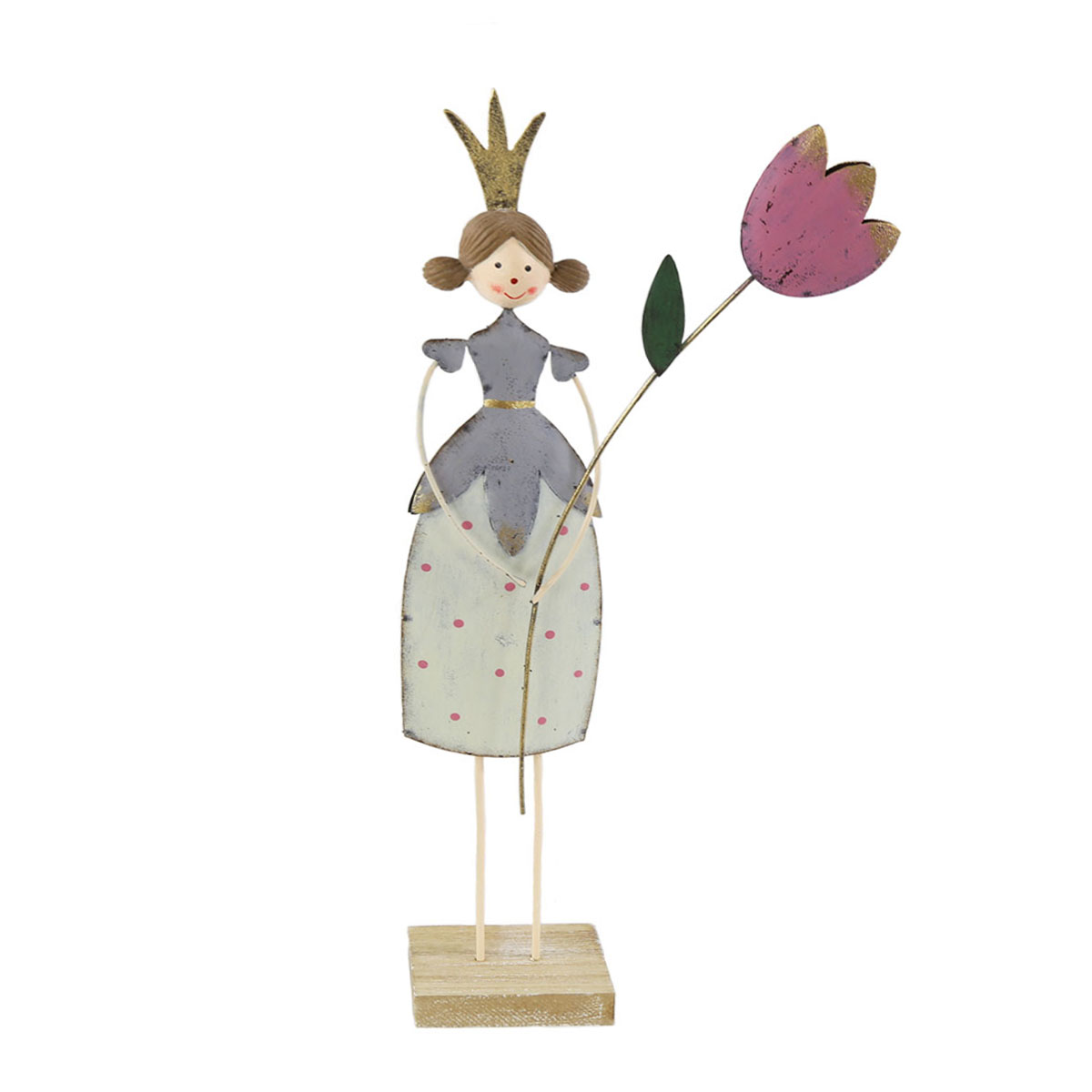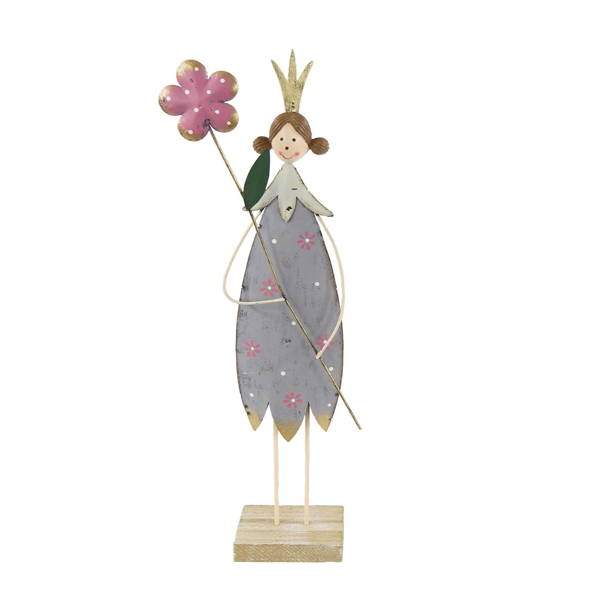 Produktinformationen "Deko Blumenmädchen mit Blume, Blumenkönigin creme und grau, 36x12cm, Metall, Set/2"