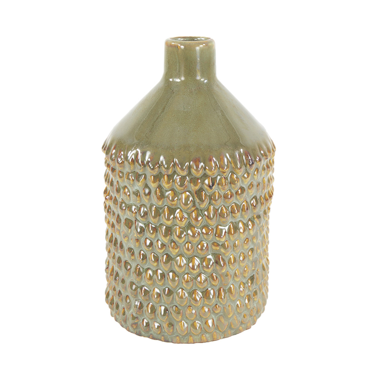 Deko Blumenvase Noppen,Keramikvase olive genoppt, 18cm