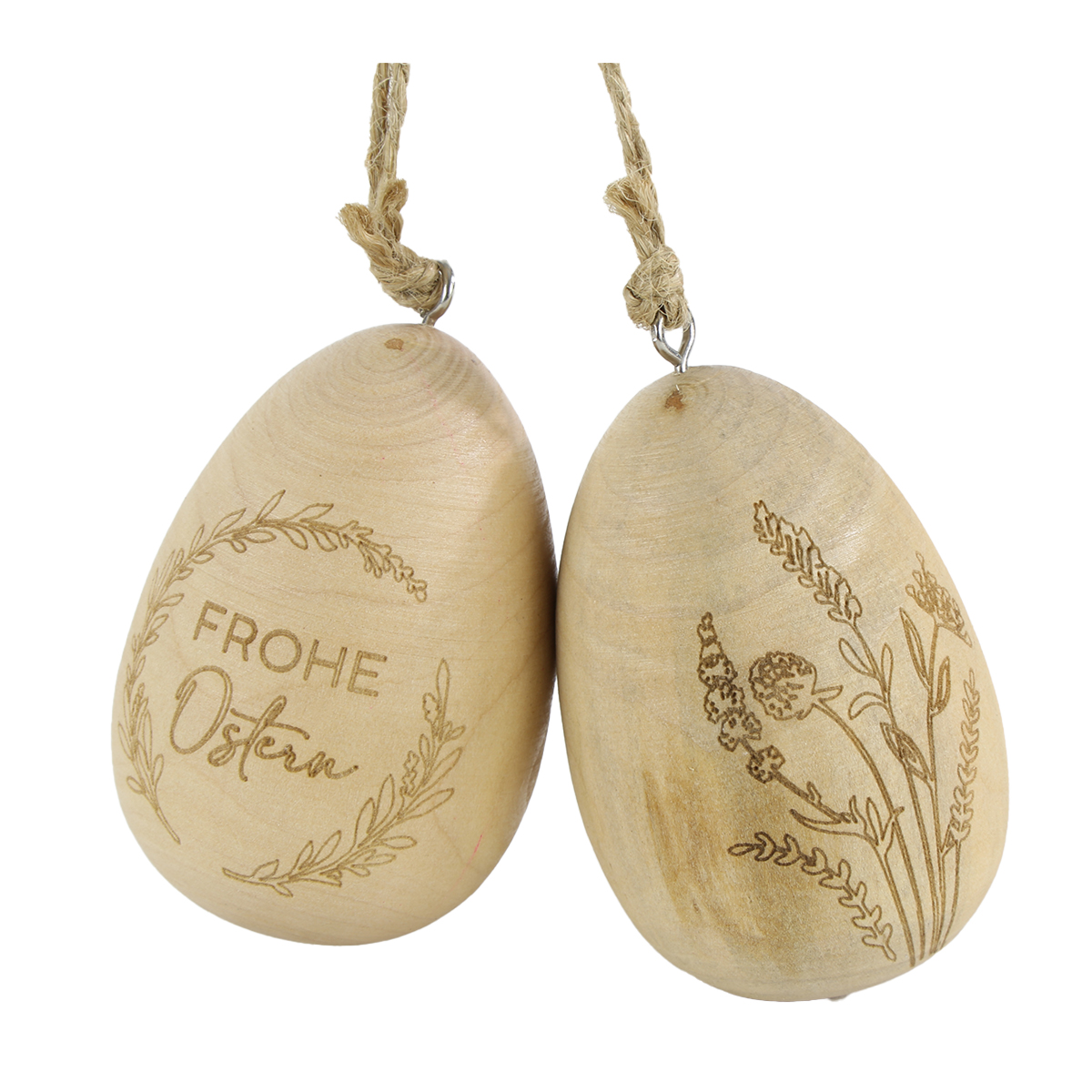 Deko Ei, Holzei, Osterei mit Schriftzug: Frohe Ostern, 7cm, Hänger