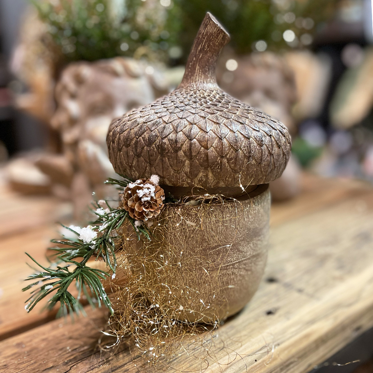 Deko Eichel in Holzoptik, Eichelgefäß mit abnehmbaren Deckel, Vorratsdose, 22cm