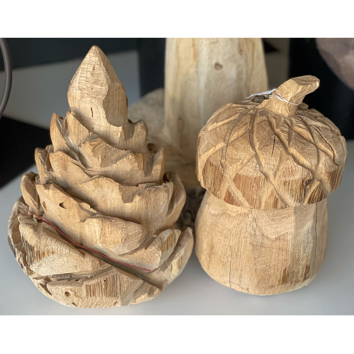 Jede Eichel wird aus echtem Naturholz gefertigt und besitzt ihre ganz eigene Form, Maserung und Farbnuance.