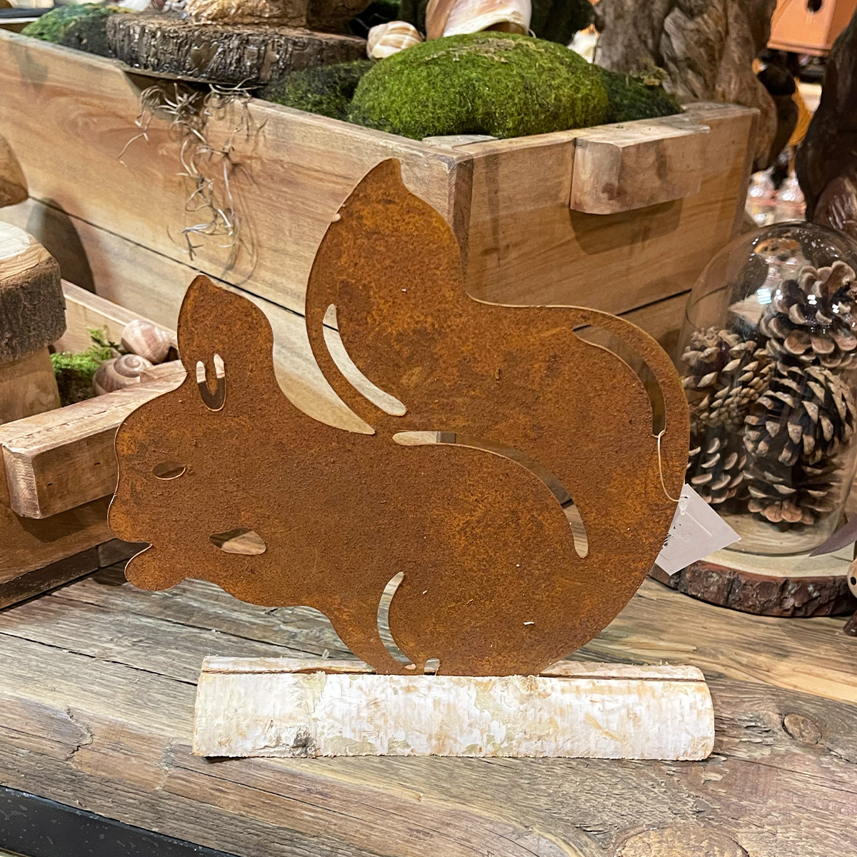 Deko Eichhörnchen auf Baumstamm, Rost Eichhörnchen auf Birkenholz, 20cm