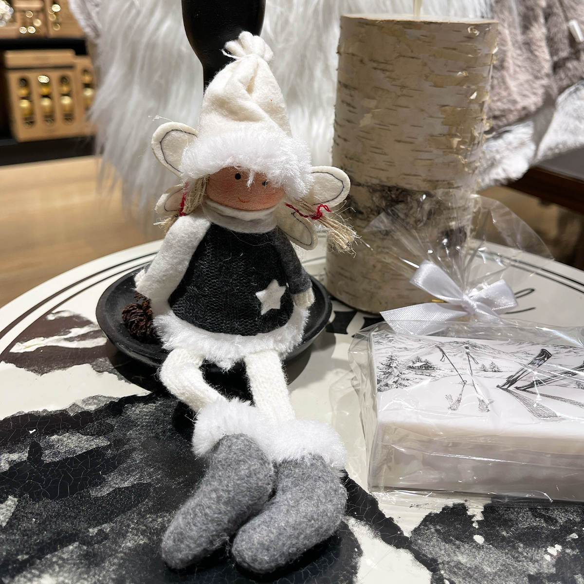 Dieses zauberhafte Engelpüppchen mit Strickkleid bringt weihnachtliche Wärme und verspielten Charme ins Zuhause.