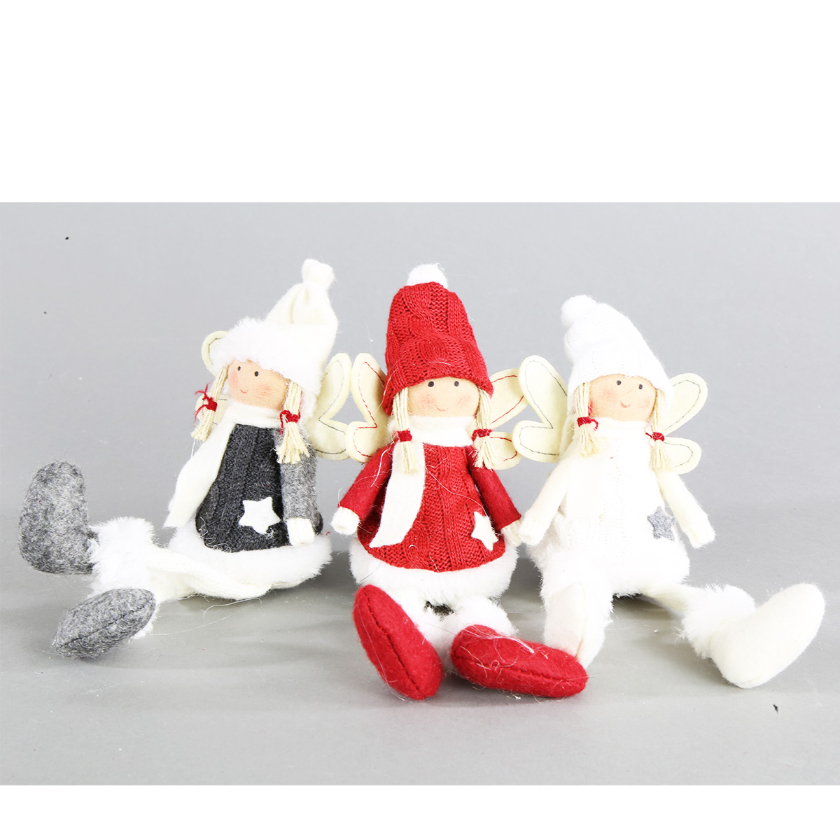 Produktinformationen "Deko Engel mit Strickkleid, Winterpüppchen gestrickt, Schlackerbeine, rot-weiß, 18cm, Kantenhocker"