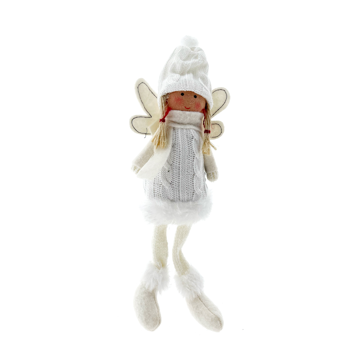 Produktinformationen "Deko Engel mit Strickkleid, Winterpüppchen gestrickt, Schlackerbeine, weiß, 18cm, Kantenhocker"