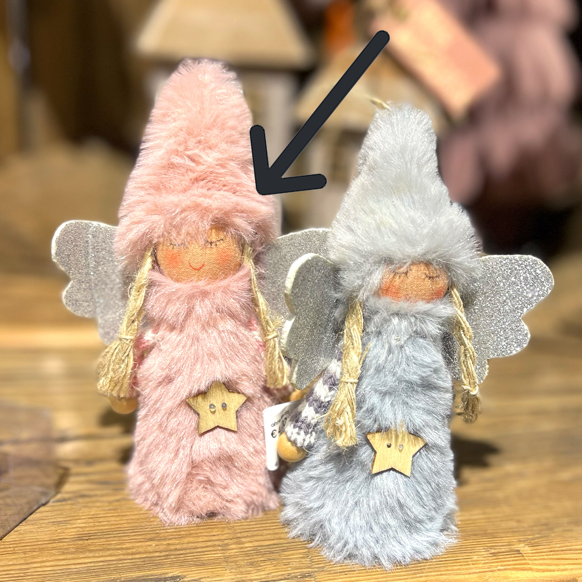 Ein Engelchen zum Verlieben – dieser niedliche Plüschengel bringt mit seinem weichen rosa Gewand und der flauschigen Mütze eine warme, liebevolle Note in jede Winterdekoration. Die kleinen Flügel und der goldene Stern auf dem Kleid verleihen ihm einen festlichen Glanz, der perfekt zu einer weihnachtlichen Landhaus-Atmosphäre passt.