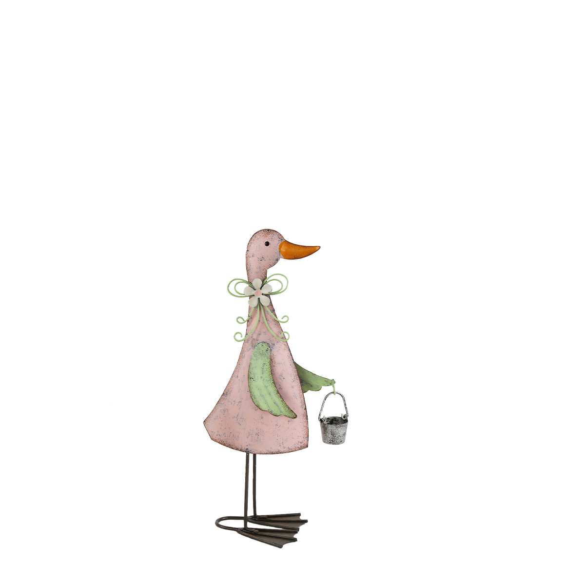 Produktinformationen "Deko Ente mit Eimer, rosa, 20cm, Metall"