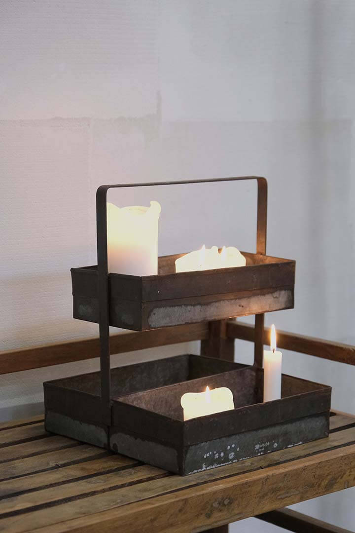 Deko Etagere Lyan used look, Metalltabletts 2-stufig, 35x30cm, Trademark Living