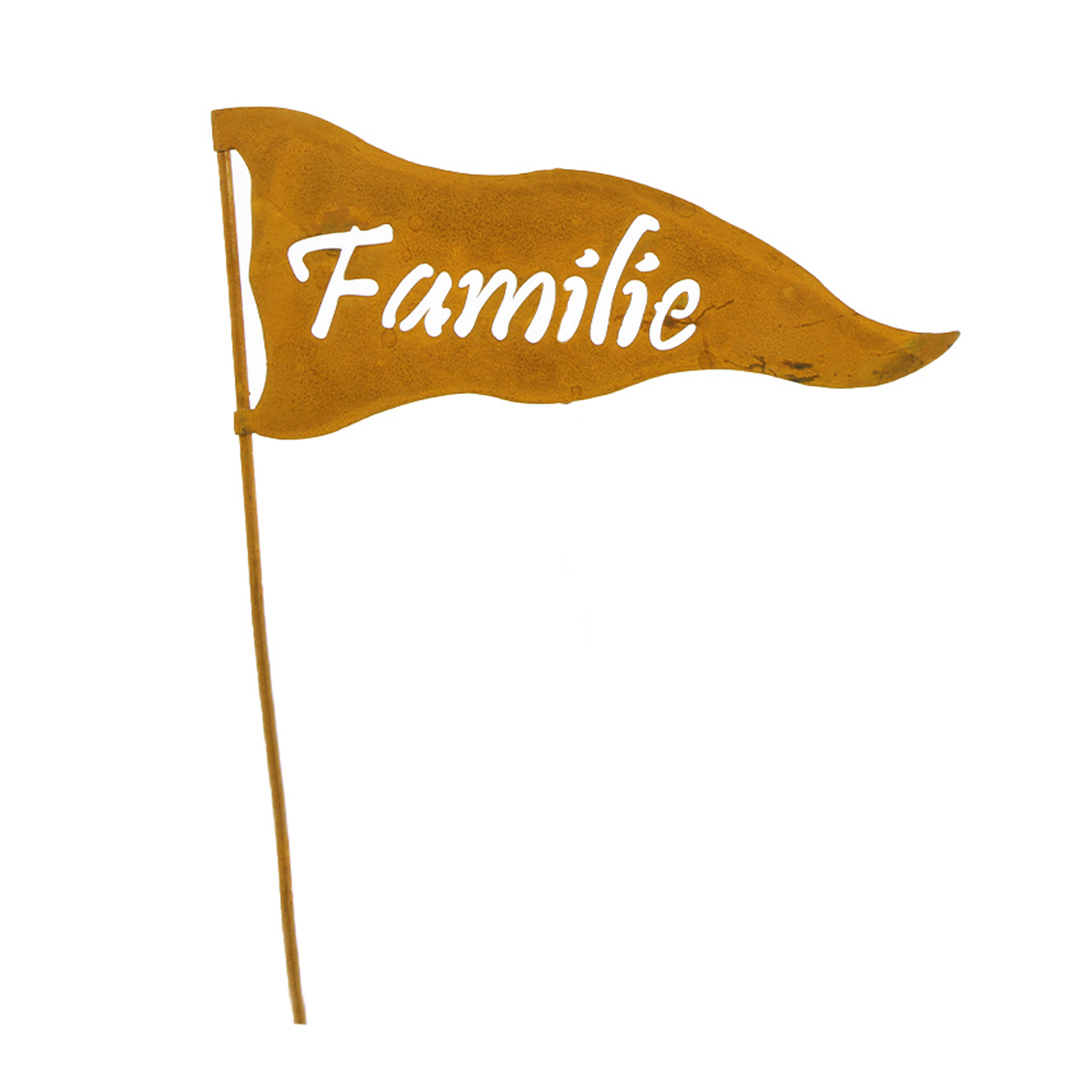 Deko Fahne, Rostfahne, Wimpel mit Schriftzug Familie, 10x26cm, Edelrost