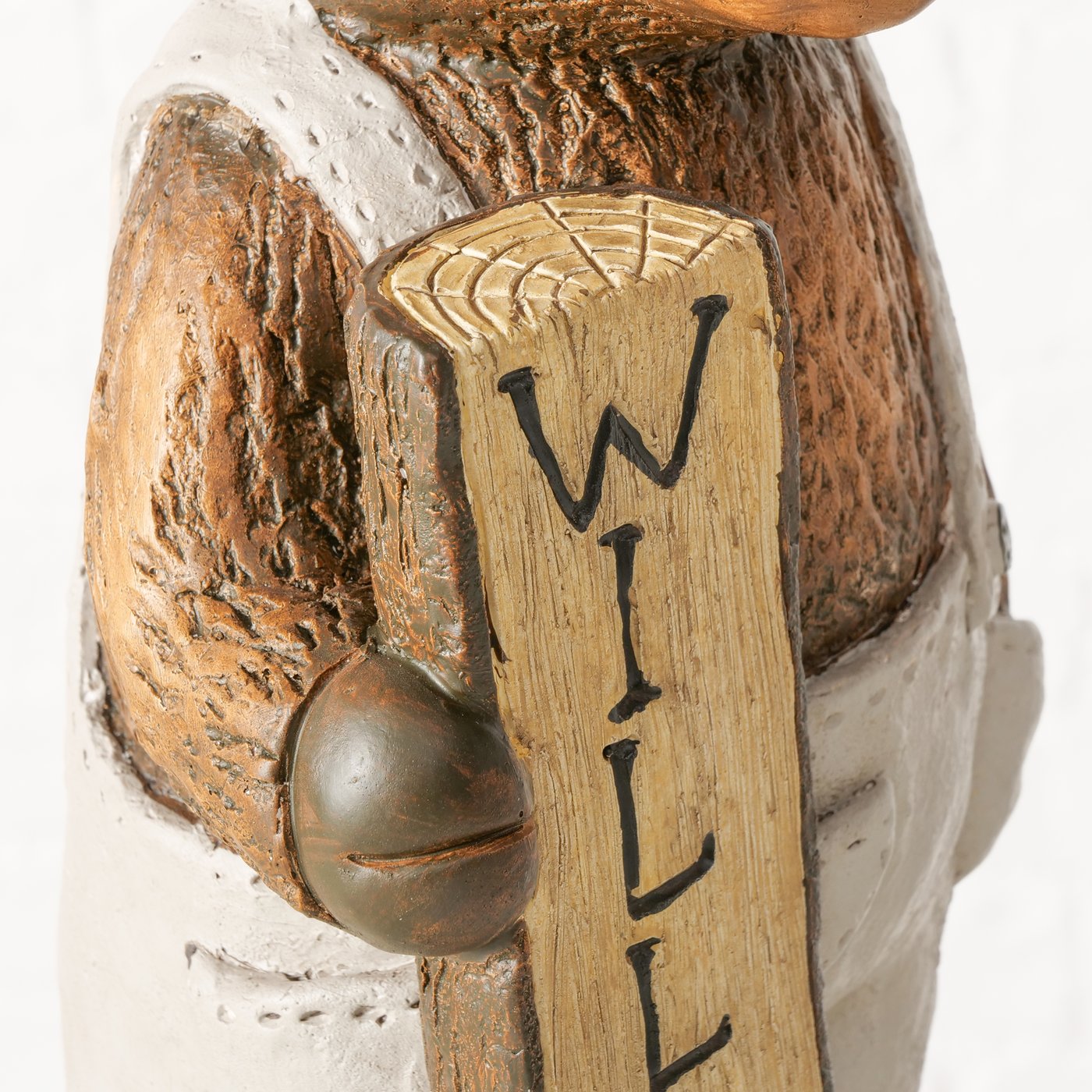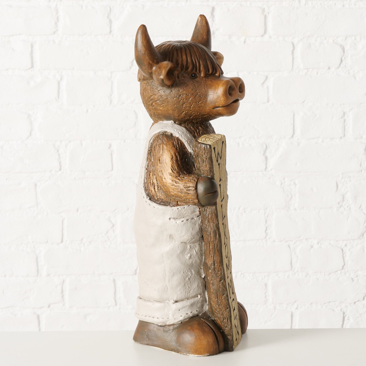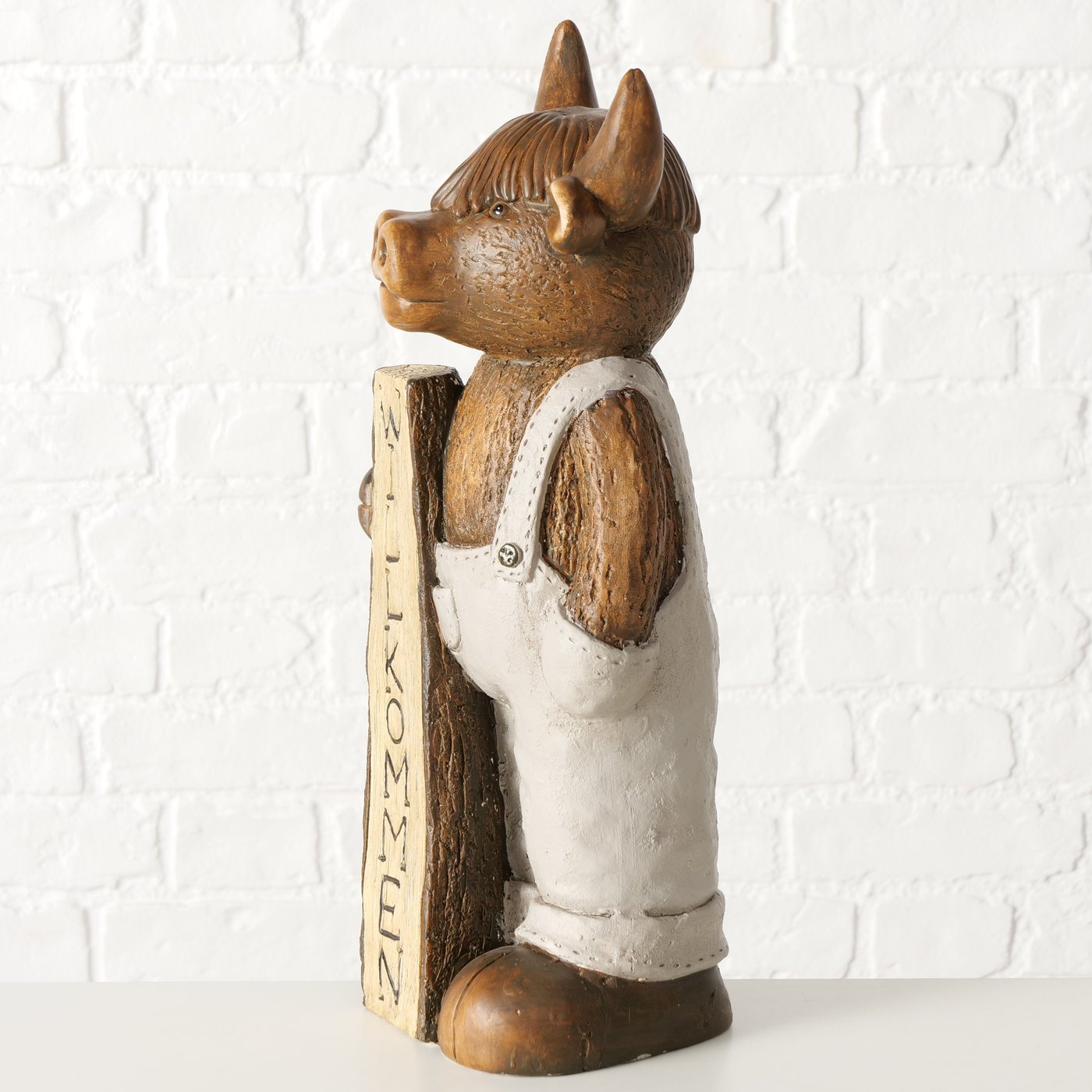 Deko Figur Schottisches Hochlandrind Buffi Willkommen, Hochlandrind mit Latzhose und Schild, Boltze Home Collections