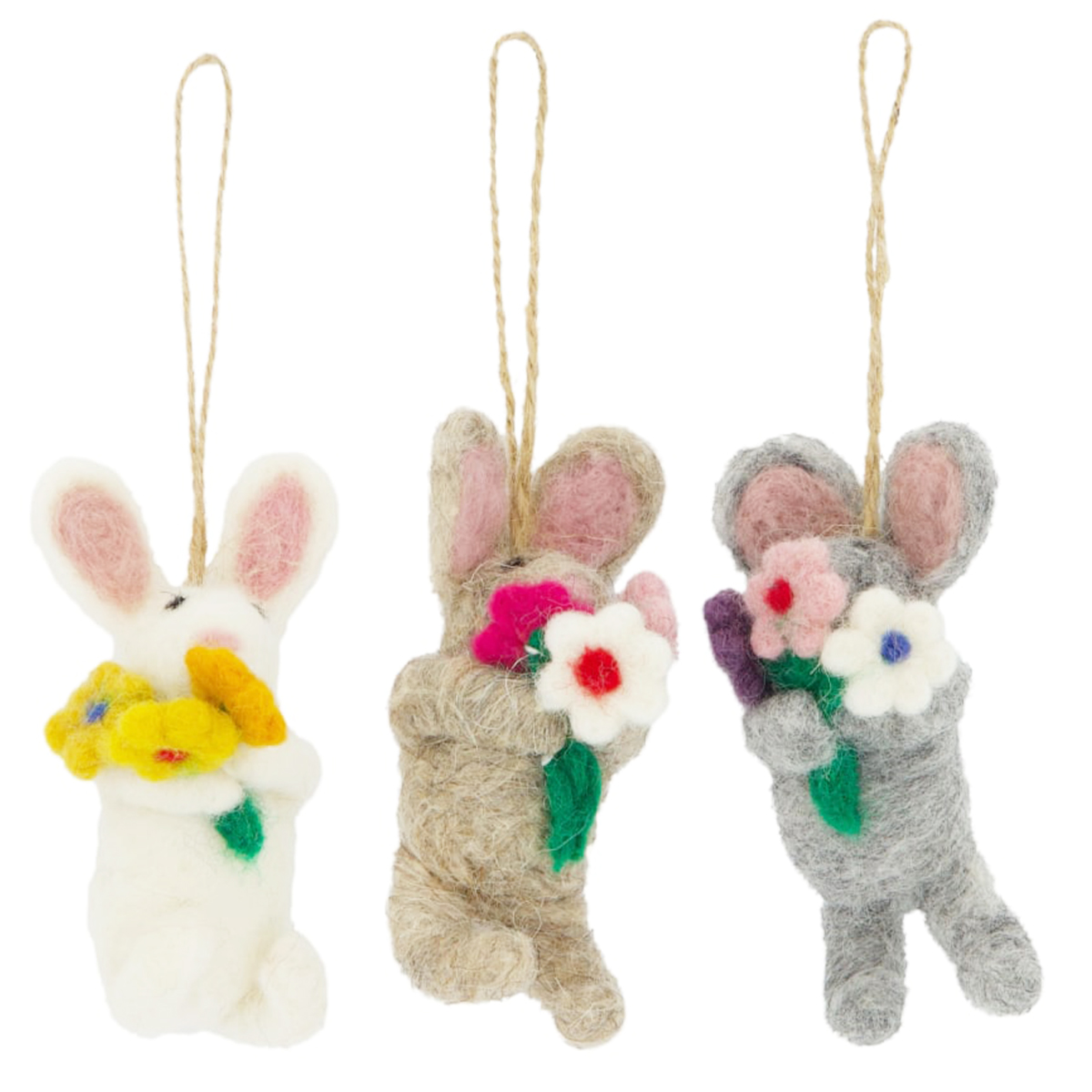 Deko Filzhase grau, Osterhase mit Blumen, 10cm, DIJK Natural Collections