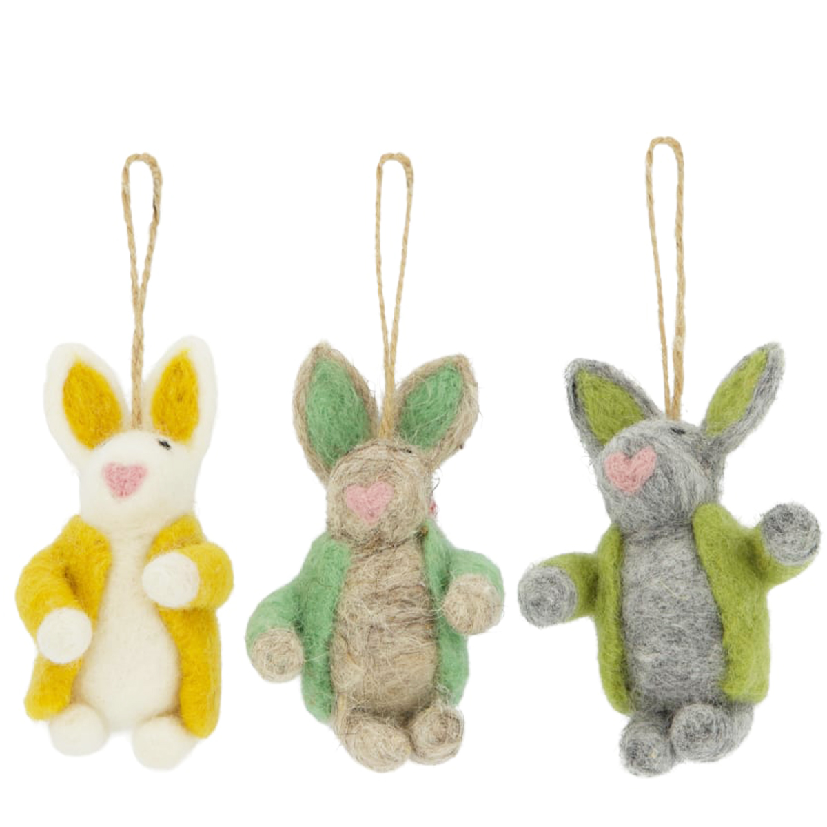 Deko Filzhase mit grüner Jacke, Osterhase grau mit Jacke, 11cm, DIJK Natural Collections