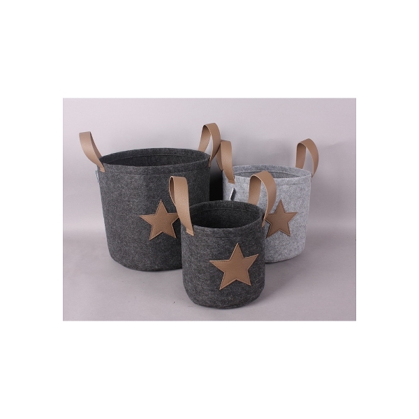 Deko Filzkorb Weihnachten mit Griffen, Übertopf aus Naturfilz mit Lederimitat Stern, 20x20cm