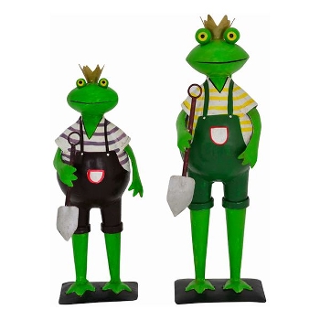 Deko Frosch, Gärtner mit Schaufel und Krone, 37cm, Metall