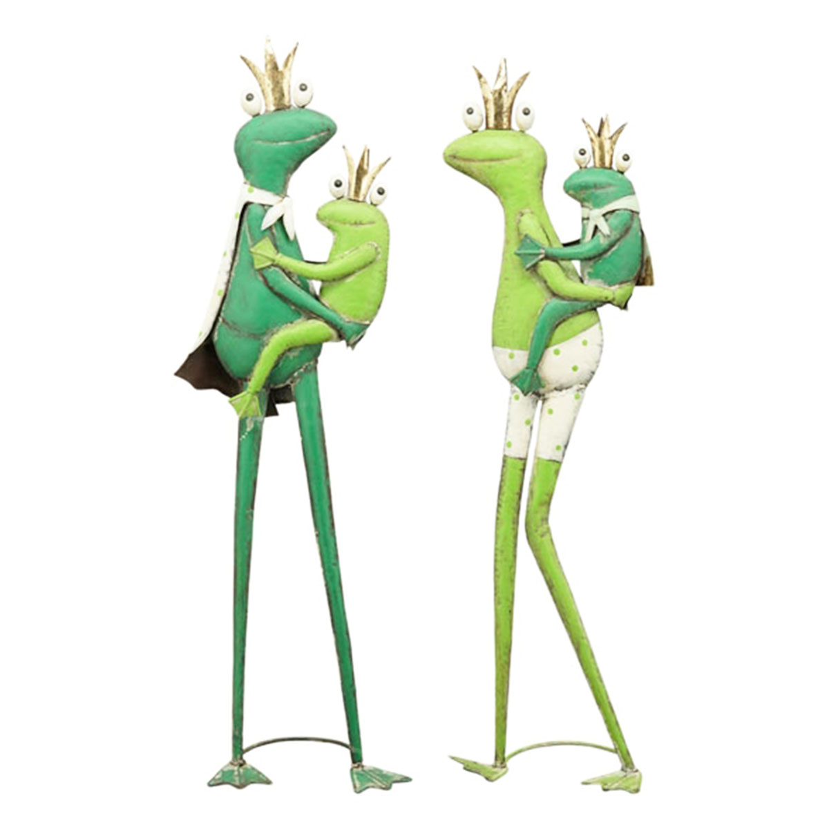 Deko Frosch mit Babyfrosch, große schlanke Metallfroschkönigin mit Babykönig, 71cm-Copy