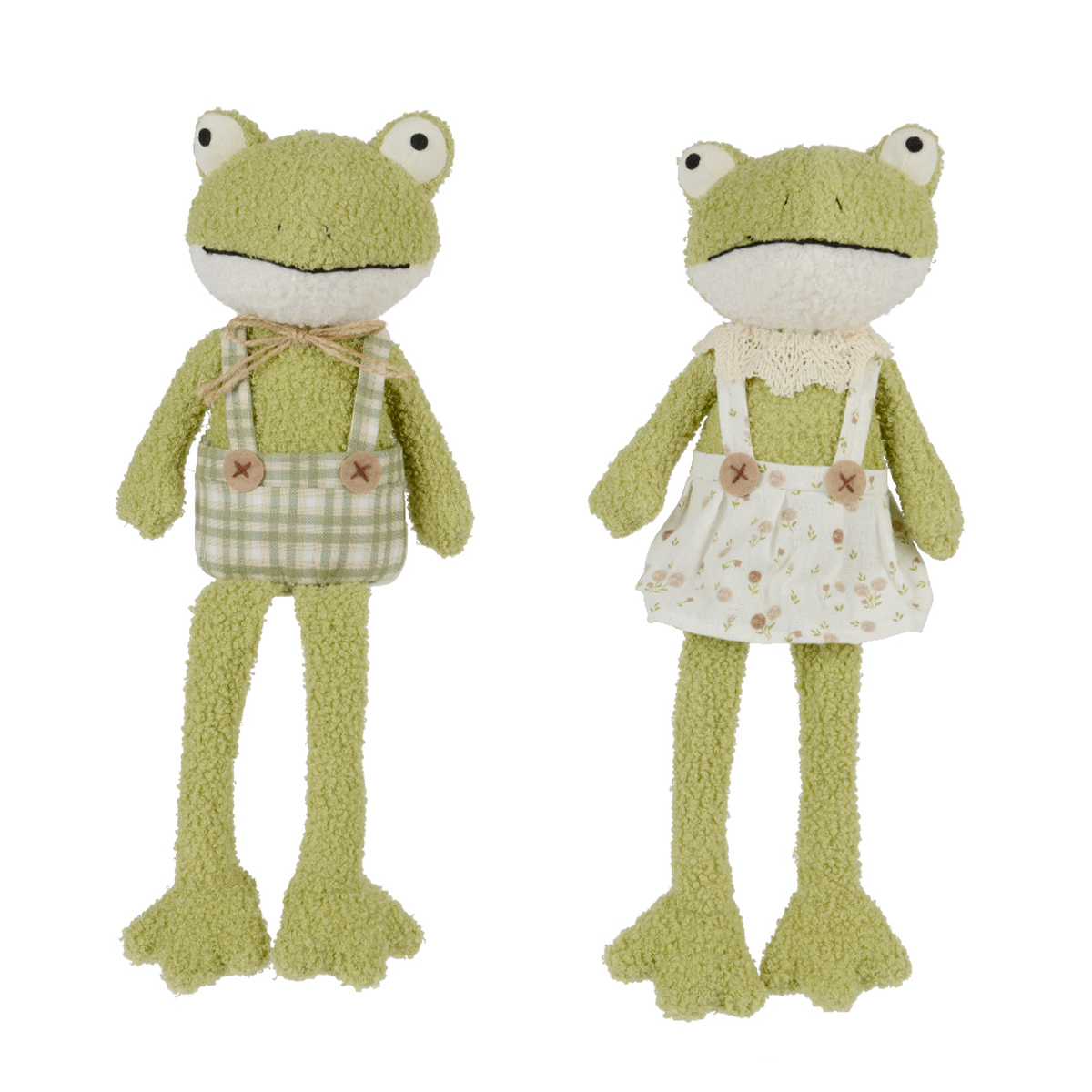 Deko Frosch mit Schürze, Plüschfrosch mit Schlackerbeinen, 42cm