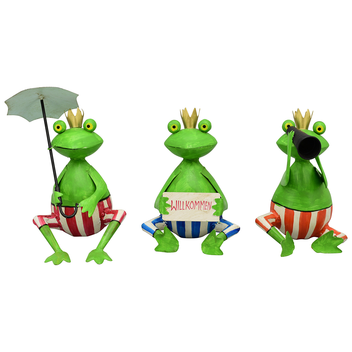 Herstellerinformationen zu "Deko Frosch Schwimmer mit Fernglas, Metallfrosch mit gestreifter Badehose, 22x28cm"
