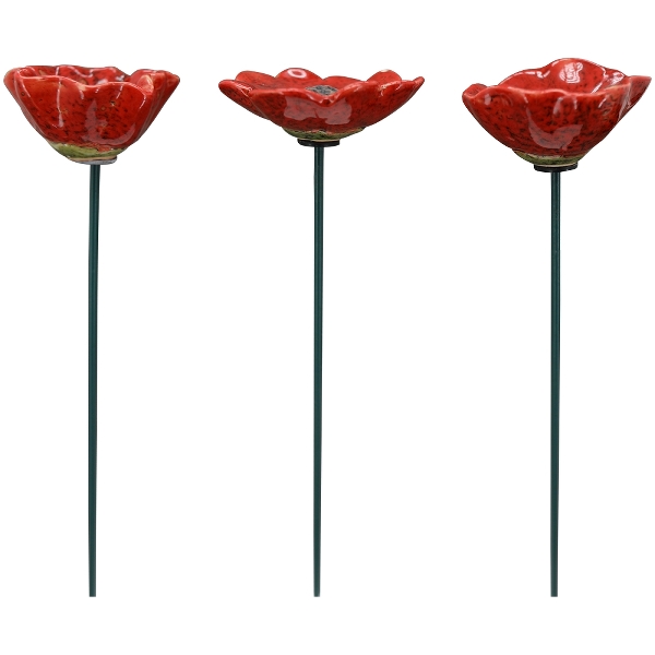 Diese liebevoll gestalteten Gartenstecker in Form roter Blüten setzen frische, farbenfrohe Akzente im Garten, im Blumentopf oder auf dem Balkon. Die glänzend glasierte Steingut-Blume in kräftigem Rot wirkt lebendig und bringt sofort gute Laune in jede grüne Ecke. Durch die leicht unterschiedliche Formgebung entsteht ein natürlicher, fast handgefertigter Charakter, der besonders charmant wirkt.