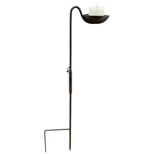 Dieser schlichte und zugleich charaktervolle Gartenstecker aus Eisen sorgt für stimmungsvolle Akzente im Garten, auf der Terrasse oder entlang von Wegen und Beeten. Die geschwungene Form mit der kleinen Metallschale wirkt angenehm zurückhaltend und passt wunderbar in natürliche, rustikale Gartenlandschaften, Bauerngärten oder moderne Outdoorbereiche mit Naturcharakter. Bestückt mit einer Kerze entsteht am Abend ein warmes, ruhiges Licht, das Wege sanft beleuchtet und eine gemütliche Atmosphäre schafft.