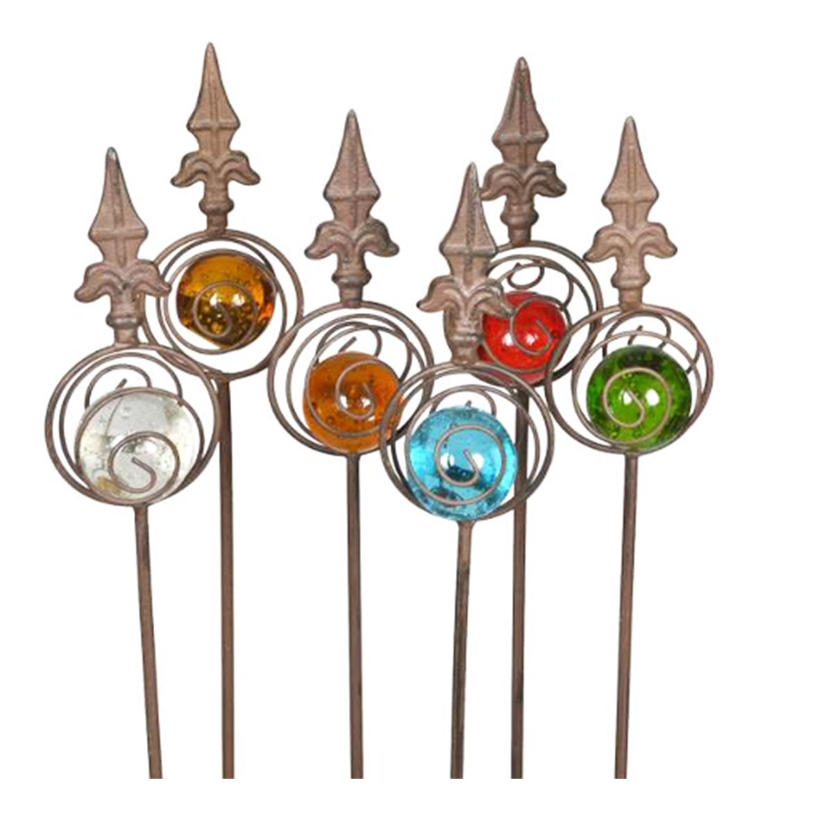 Deko Gartenstecker, Stab mit Glaskugel, grün oder klar, 118cm, Eisen