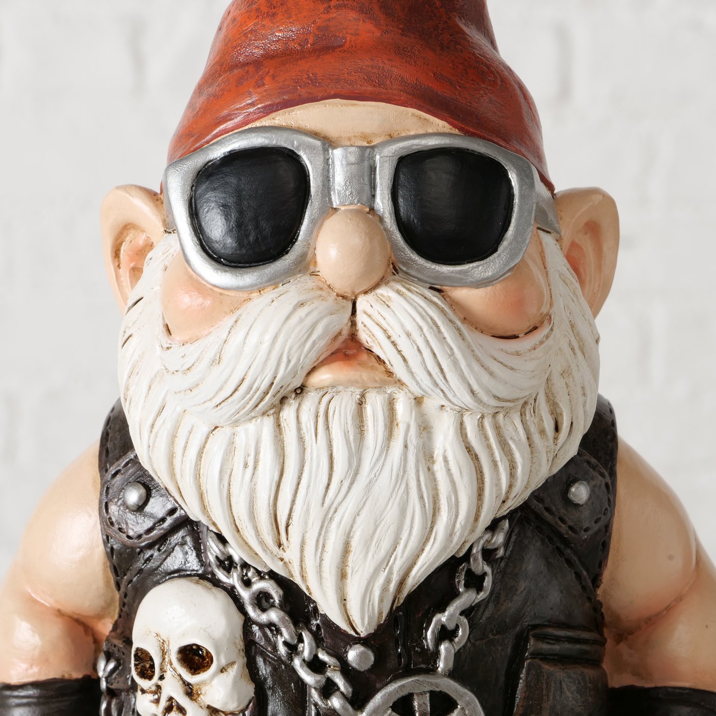 Mit Lederweste, Totenkopf-Detail und lässiger Haltung bringt Manne genau die richtige Mischung aus Gelassenheit und Charakter in dein Zuhause. Er muss nicht laut sein wie Wolfgang oder so lässig posen wie Helga – er wirkt einfach. Und zwar ziemlich gut!