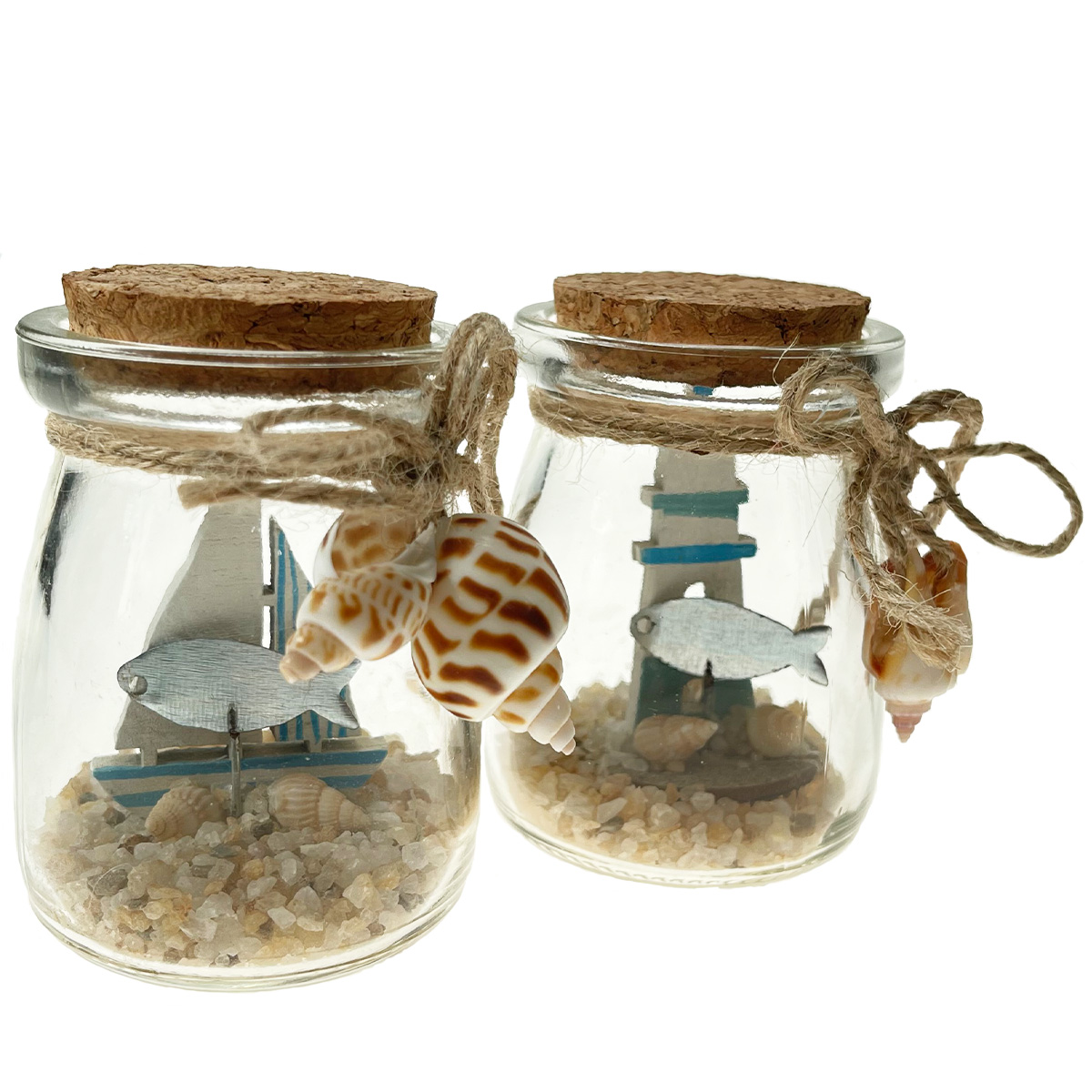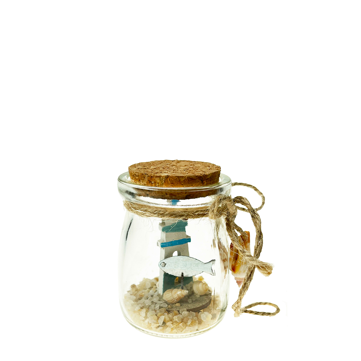 Deko Glasflasche mit Leuchtturm und Fisch, 5cm