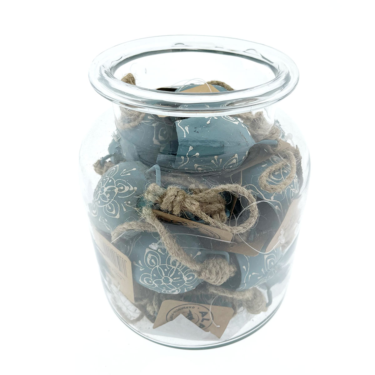 Deko Glocke blau mit Klang, Kuhglocke mit Blumenmuster blau-weiß, 7cm