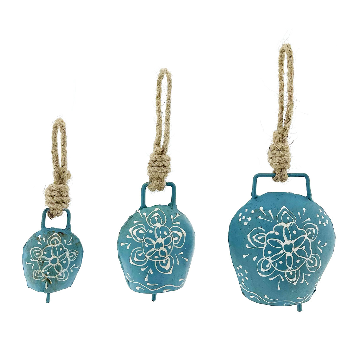 Produktinformationen "Deko Glocke blau mit Klang, Kuhglocke mit Blumenmuster blau-weiß, 7cm"